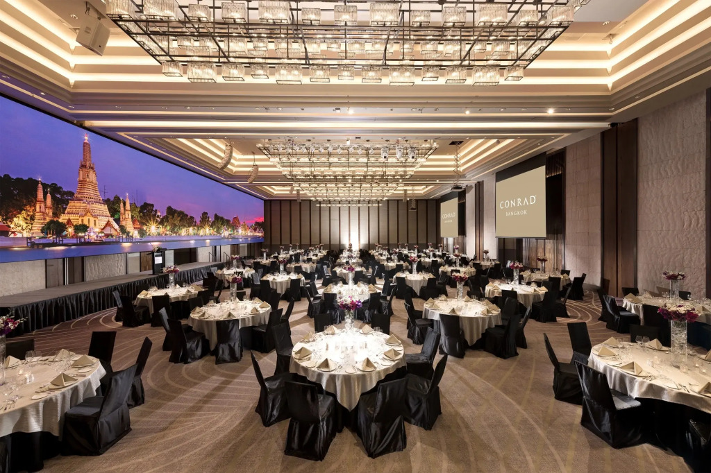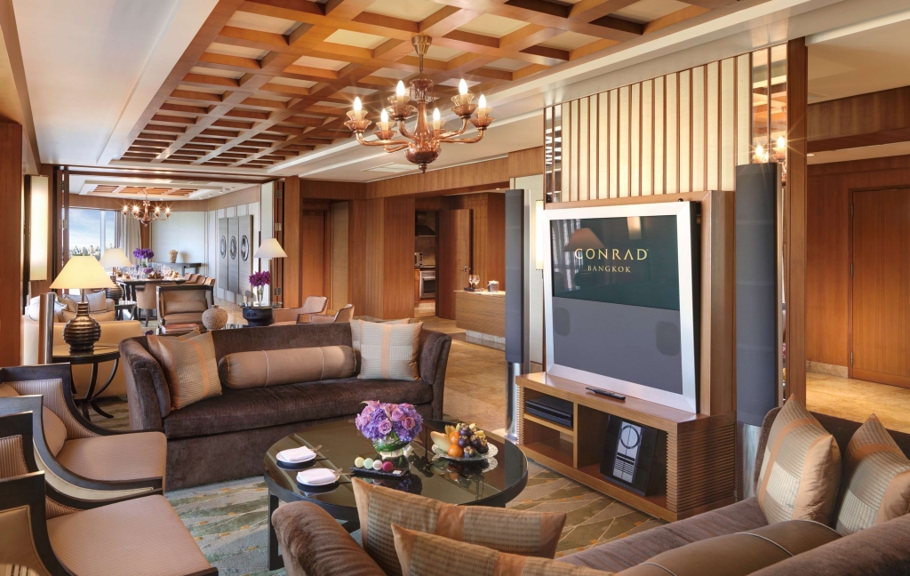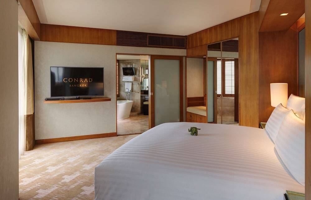 Из такого отеля на улицу можно вообще не выходить — отель «Conrad Bangkok» располагается в Бангкоке. Этот отель находится в 6 км от центра города. Рядом с отелем можно прогуляться. Неподалёку: Сала Доенг, Храм Эраван и Торговый комплекс CentralWorld.