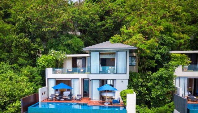 Oceanview Three Bedroom Pool Villa: кондиционер, потолочный вентилятор, напольное покрытие - паркет/кафель, зона столовой, зона кухни, гардеробная, ванна/отдельный душ, шампунь/гель для душа, халаты/тапочки, фен, сейф, утюг/гладильная доска, мини-бар, набор для чая/кофе, кофеварка, телефон, ТВ, DVD-проигрыватель, Wi-Fi, док-станция для iPod, рабочий стол, количество уровней - 2, сад, бассейн, терраса