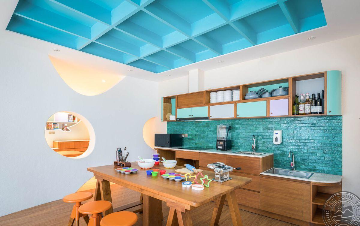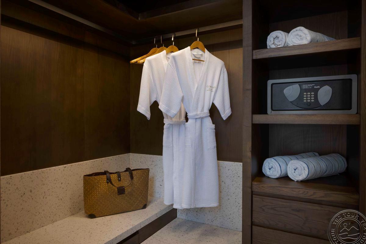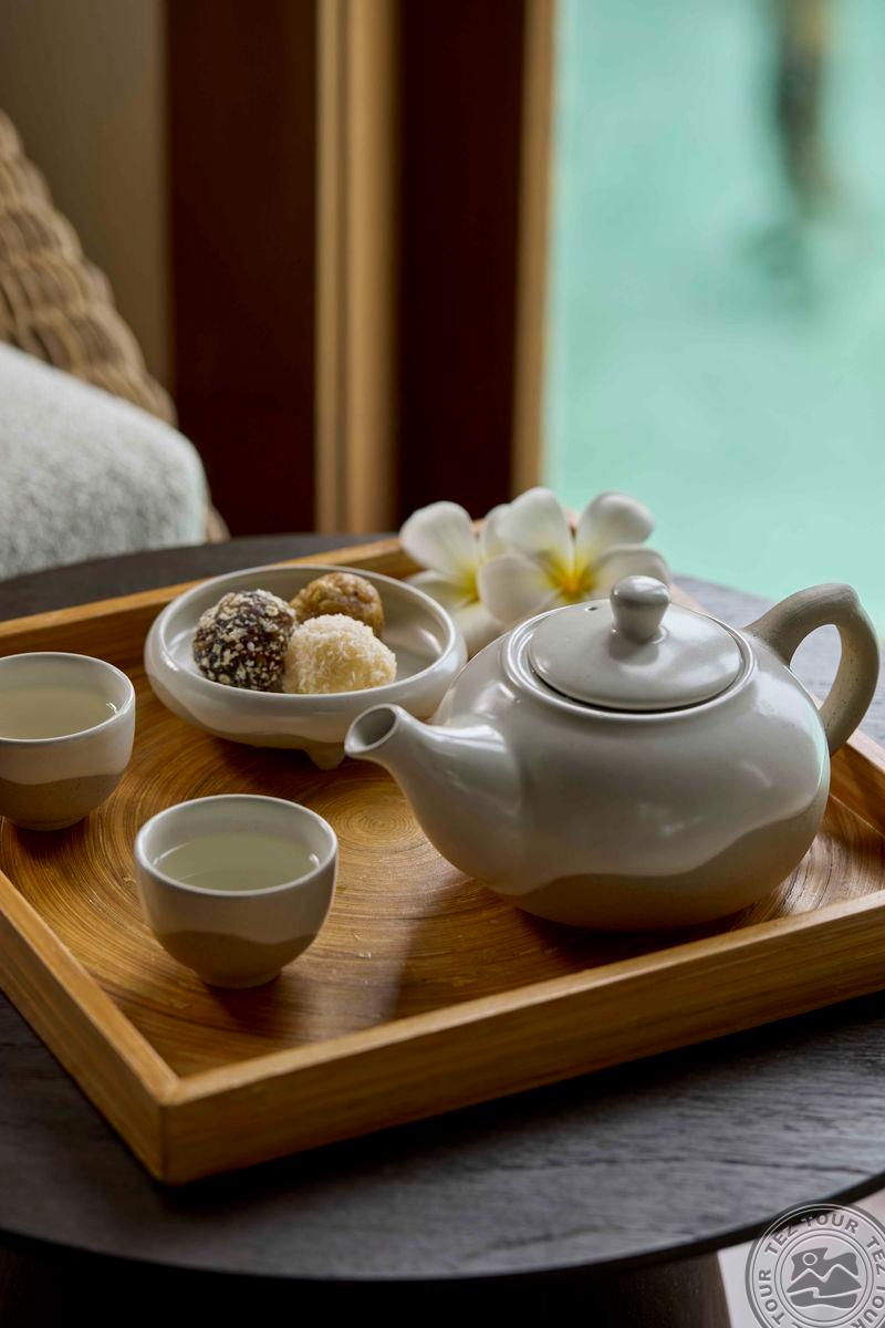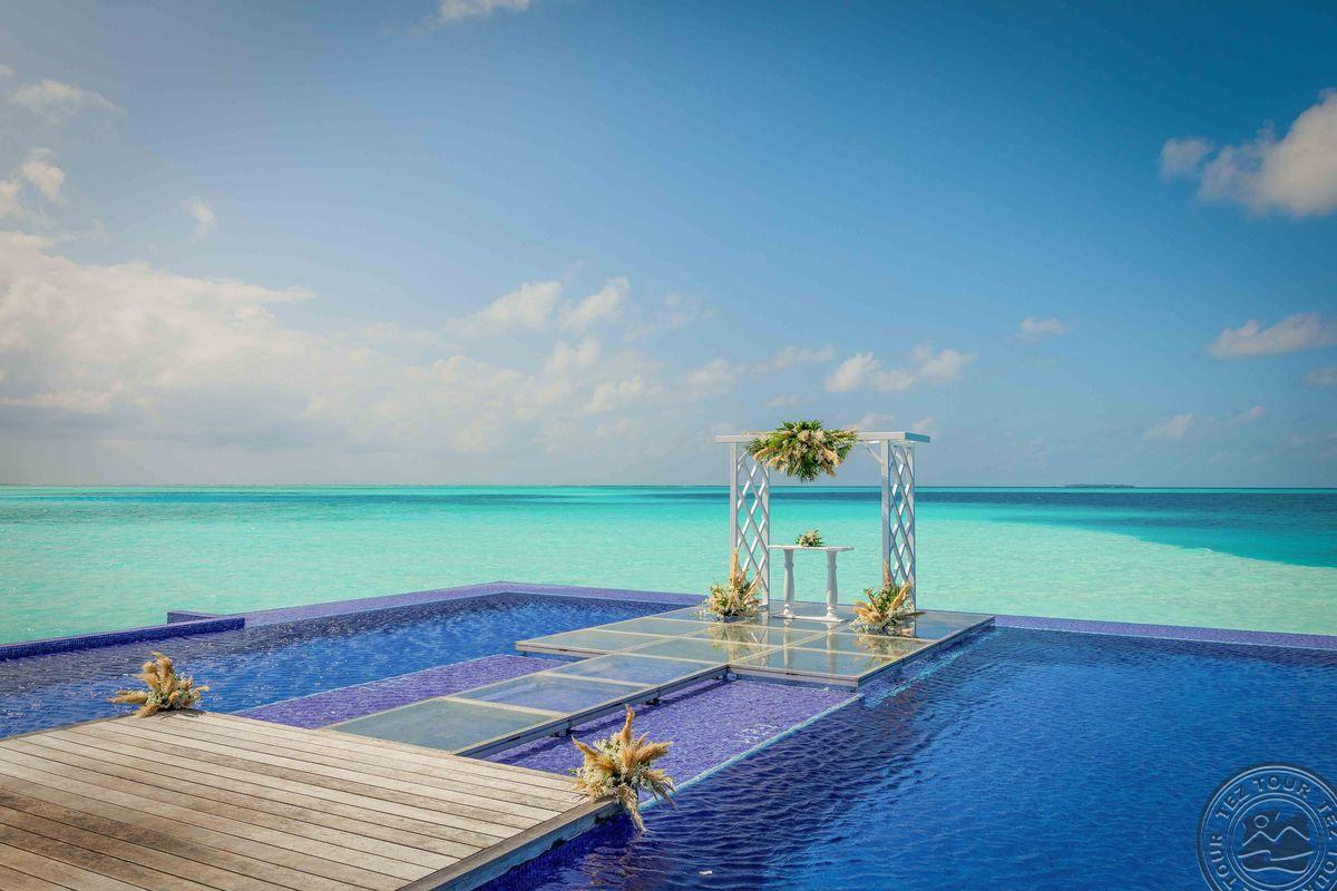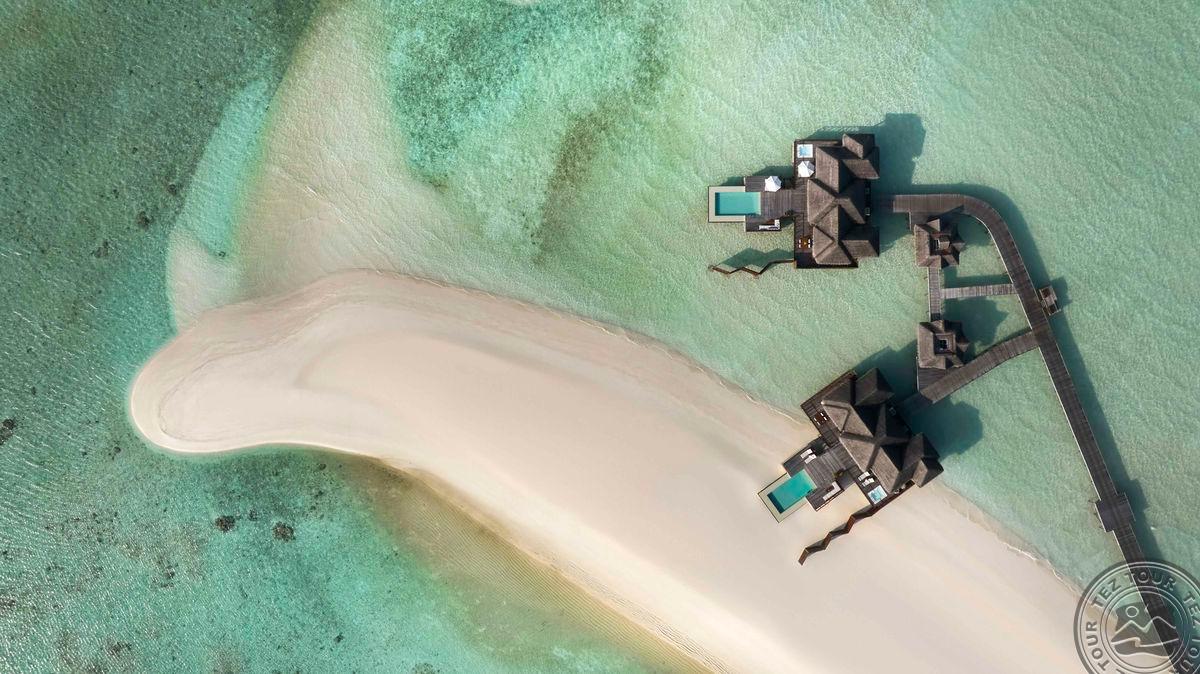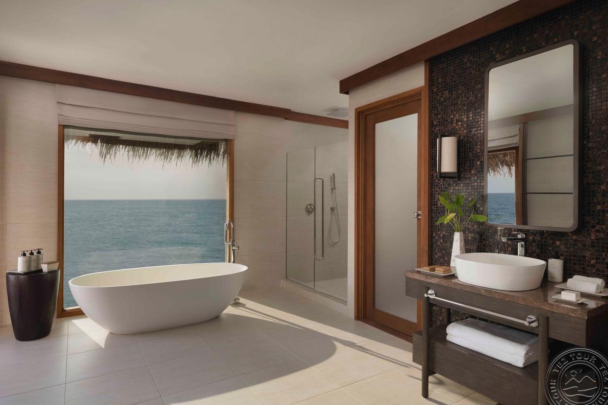 2 Premier Water Villa with Pool (152 м², макс. 3 чел.). Размещение только для взрослых 16+. Водные виллы с видом на океан, кровать king-size. Дизайнерская мебель, скошенные потолки, выбеленные стены, картины мальдивского художника. Терраса с «бескрайним» бассейном и прямым спуском в воду. Ванная комната с ванной и окнами во всю стену. Услуги персонального батлера.