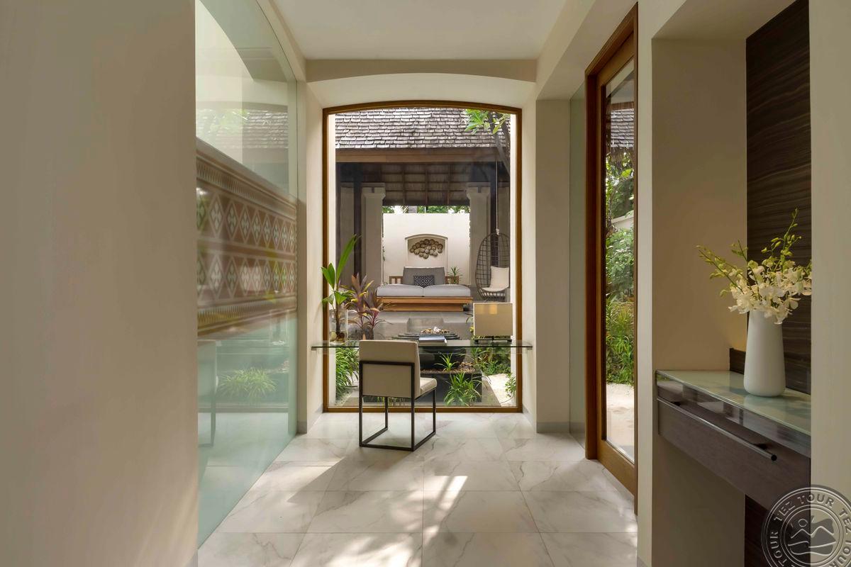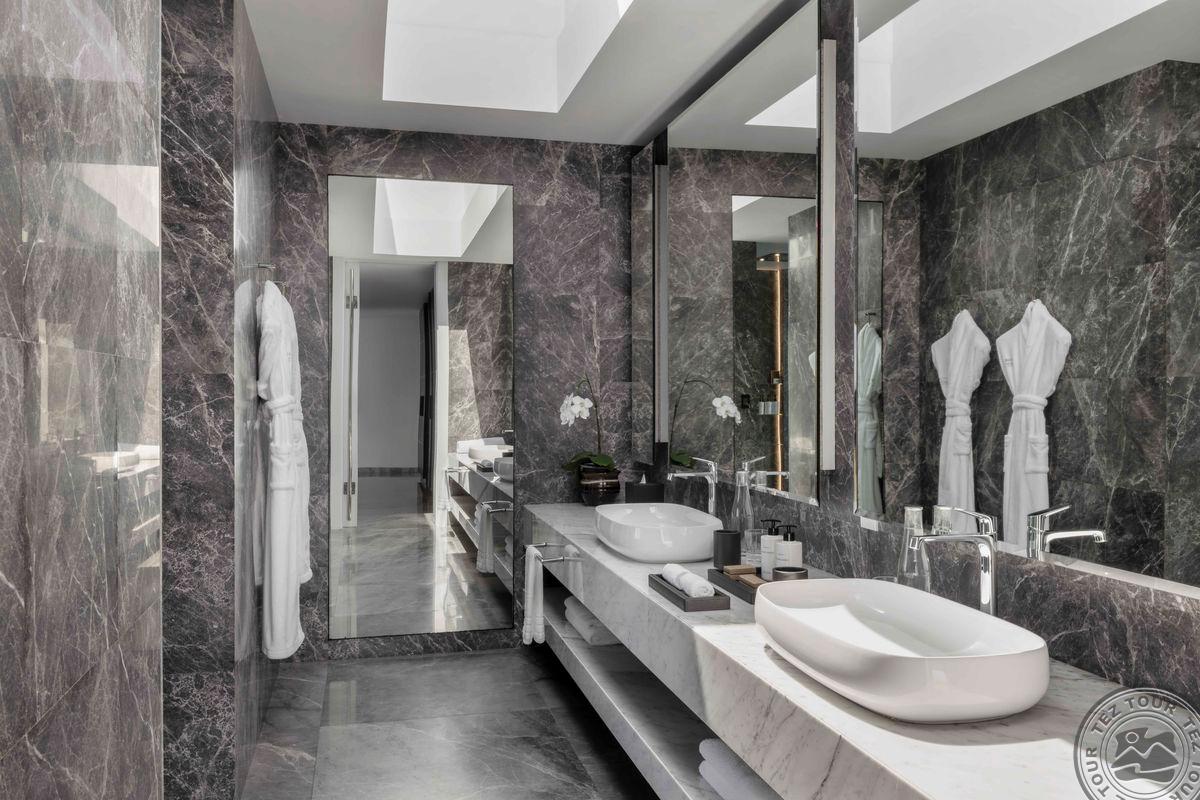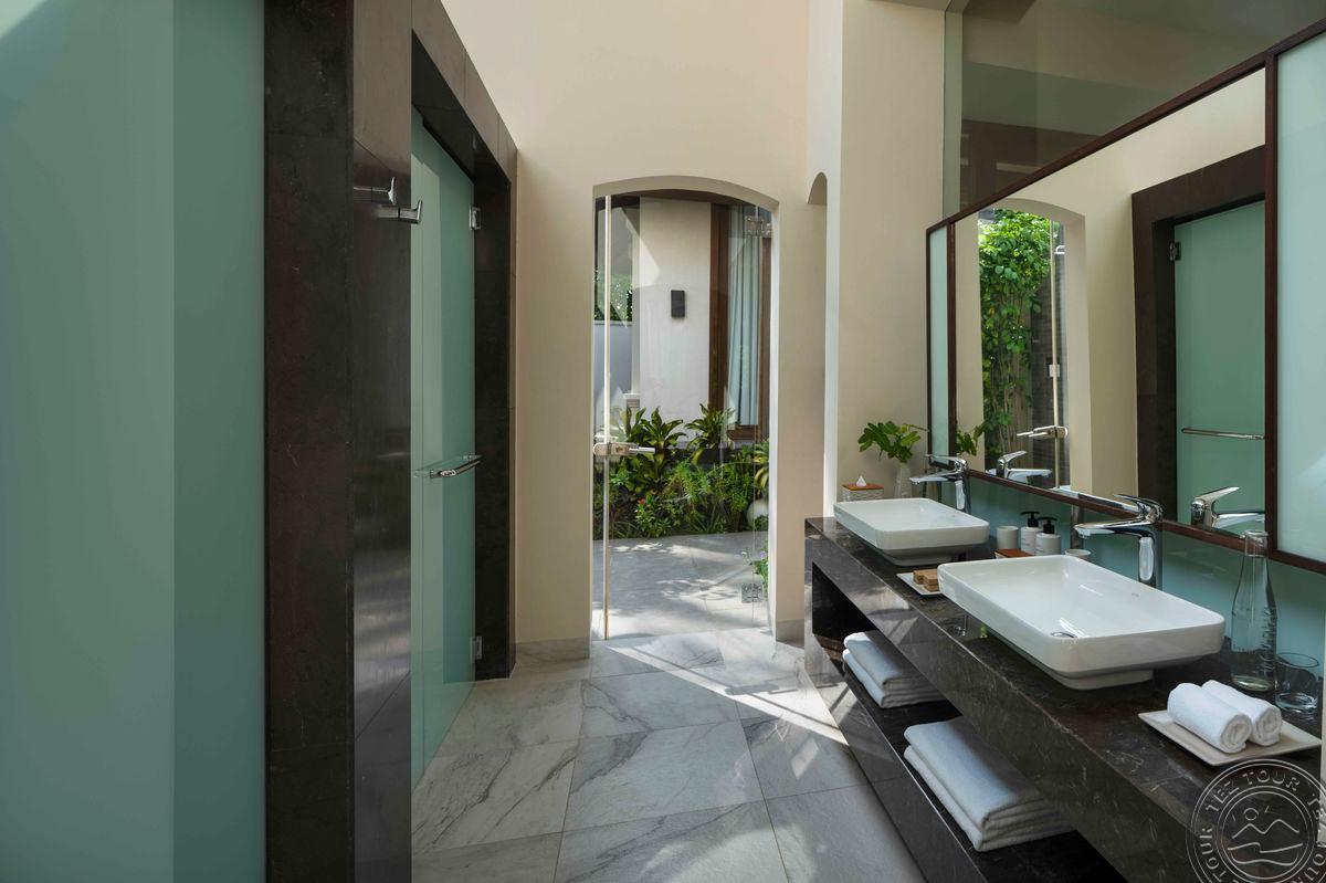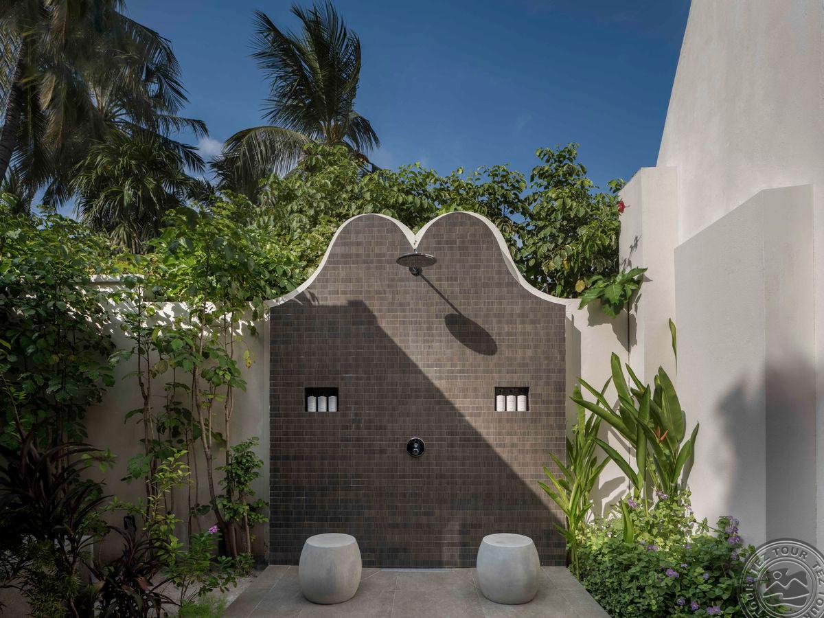35 Beach Villa (150 м², макс. 4 чел.). Береговые виллы c индивидуальным выходом на пляж. Cпальня (кровать king-size) со стеклянными стенами и выходом на террасу, в частный сад. Купальный павильон с ванной во внутреннем дворике.