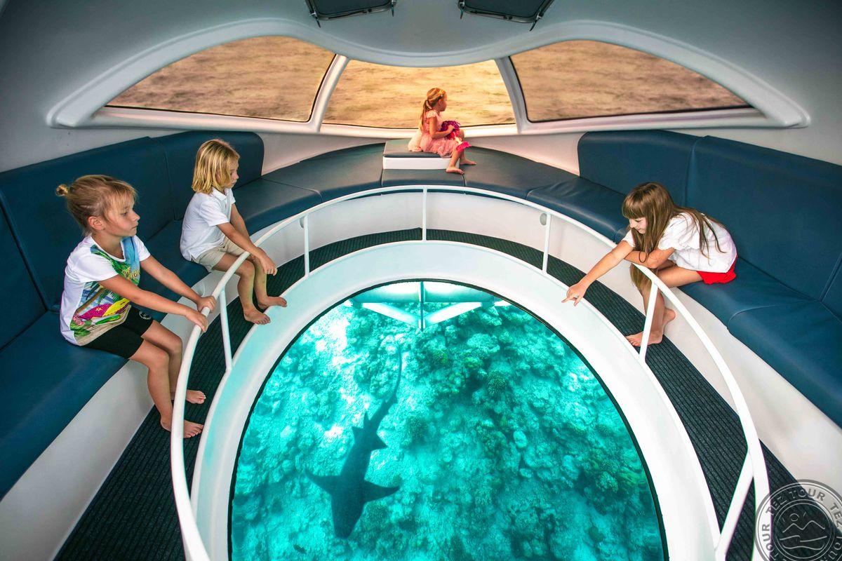 28 Sunset Water Villa with Pool (86 м², макс. 3 чел.). Размещение только для взрослых 16+. Водные виллы. Спальня с кроватью king-size, диваном и небольшим стеклянным рабочим столом, расположенным над стеклянной панелью в полу. Терраса с прямым спуском в воду и небольшим бассейном. Ванная комната с ванной и душем.