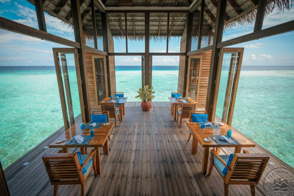Трансфер: 30 минут на гидросамолете (с 06:00 до 16:00) или 20 минут на самолете внутренних авиалиний (с 16:00 до 22:00) до аэропорта Маамигилли + 30 минут на скоростном катере до отеля.