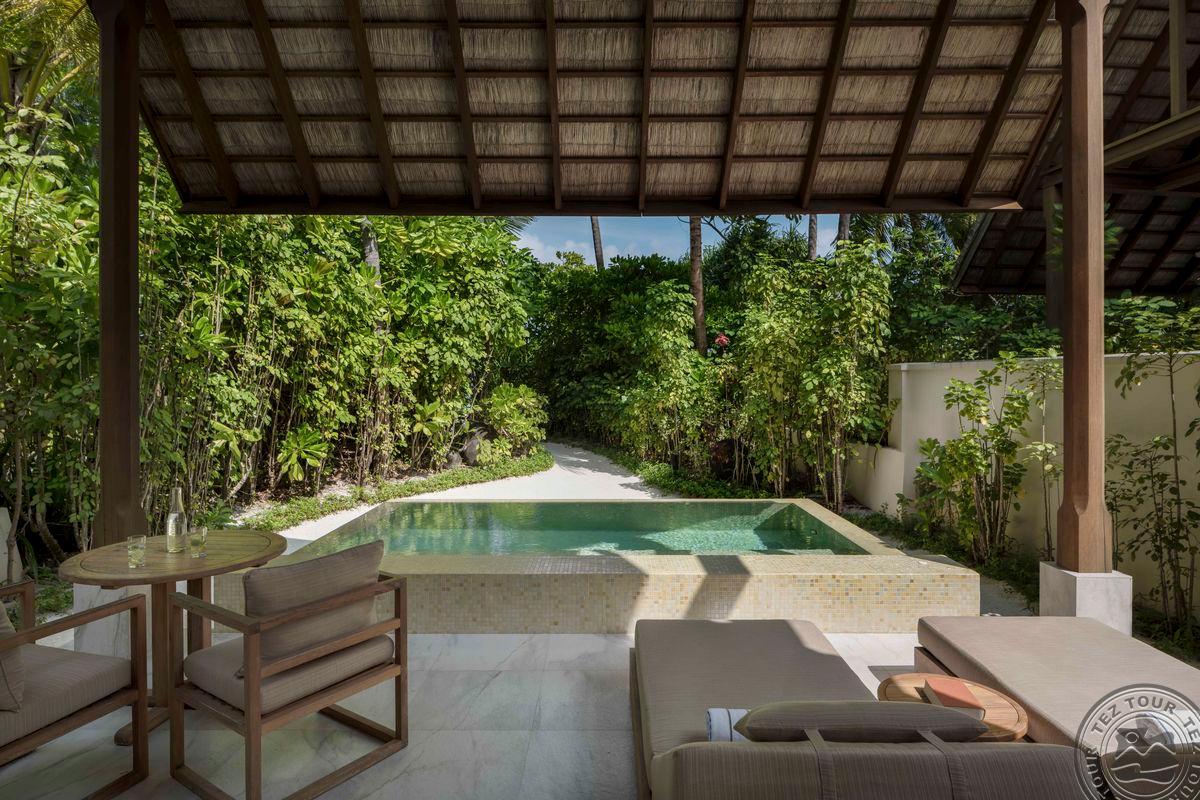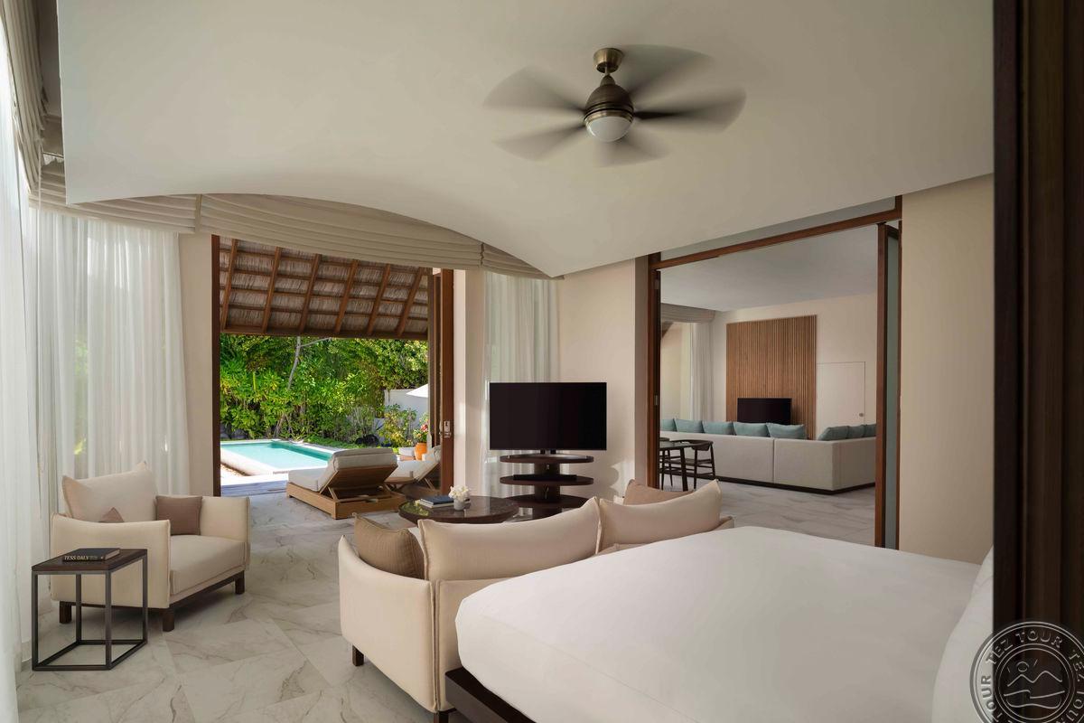 2 виллы 3 Bedroom Beach Suite with Pool (668 м², макс. 6 или 5+2 чел.). Пляжная вилла с 3 спальнями (2 кровати king-size и 2 односпальные кровати), гостиная, оборудованная кухня, 3 ванными комнатами, 2 бассейнами. Услуги персонального батлера.