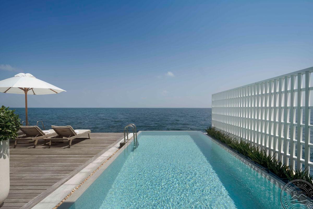 32 Deluxe Beach Villa with Pool (300 м², макс. 3 чел.). Виллы с видом на океан. Просторная спальня (кровать king-size) с панорамными окнами, садик с небольшим бассейном, тахта для отдыха с крытым павильоном, 2 душа (в помещении и на открытом воздухе), терраса с шезлонгами и кофейным столиком.