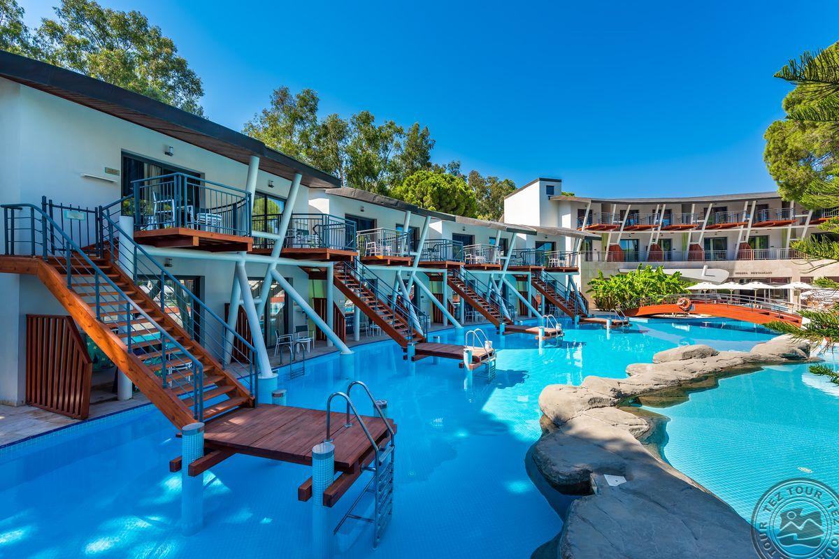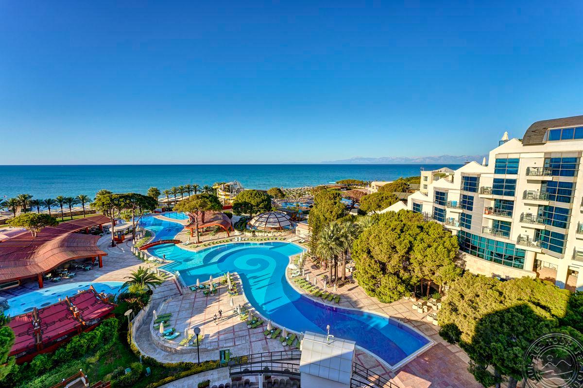 - Расположение: в 35 км от аэропорта и в 45 км от центра г. Анталья, в 4 км от г. Белек, на берегу моря. Отель: Построен в 2002 году, общая площадь 65 000 м2. Последняя реновация (частичная) была в 2016 году. Отель состоит из основного пятиэтажного здания (70% номеров с видом на море), комплекса номеров со спуском в бассейн Villa Junior Suites- Annex Building (доп. строение) и трехэтажного здания номеров Standard Rooms Garden View-Annex Building (доп.строение) с видом на сад. 205 Standard Rooms: Standard Rooms Side Sea View/Standard Rooms Sea View ( c видом на море, и с частичным видом на море,из них 3 номера для людей с ограниченными физическими возможностями, 22 connection rooms, макс. 2+1 чел., 3 взрослых 35–40 м2); 15 Duplex Family Room side sea view ( дублекс, частичный вид на море, на первом этаже спальня (балкона нет) и на втором уровне спальня (балконный порог), между спальнями дверь, 2 ванные комнаты, 2 ТВ,