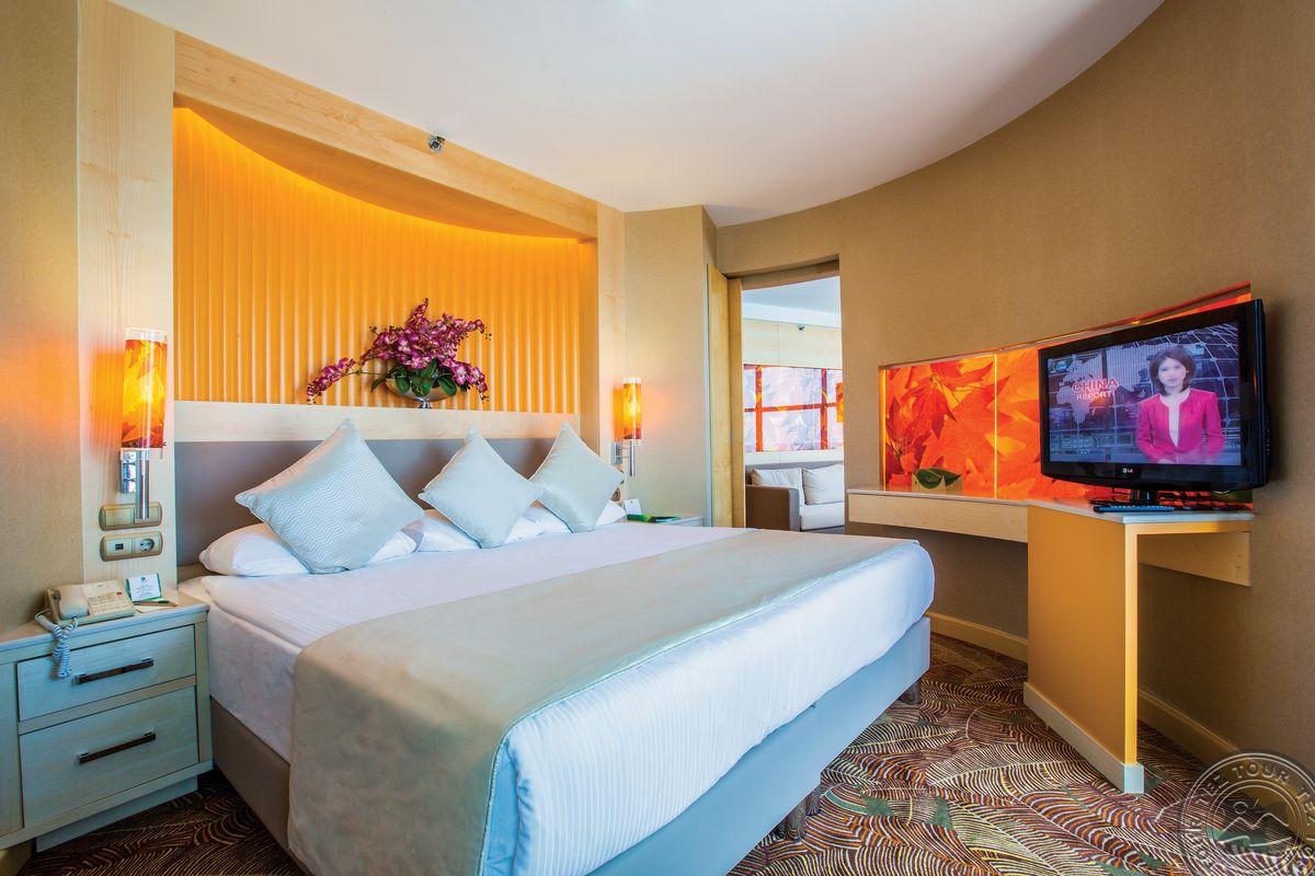 - макс. 4+1 чел., 55 м2); 8 Deluxe Suites sea view (вид на море, гостиная, спальня с раздвижной дверью, ванная комната с ванной и душем, джакузи на террасе, 2 ТВ, полный мини-бар, включая местные и импортные напитки, макс. 2+2 чел., 100 м2); 80 Junior suite lake side-Anneх Building (с видом на сад бассейн, расположены в отдельной зоне, макс. 2+1 чел., 35–40 м2);