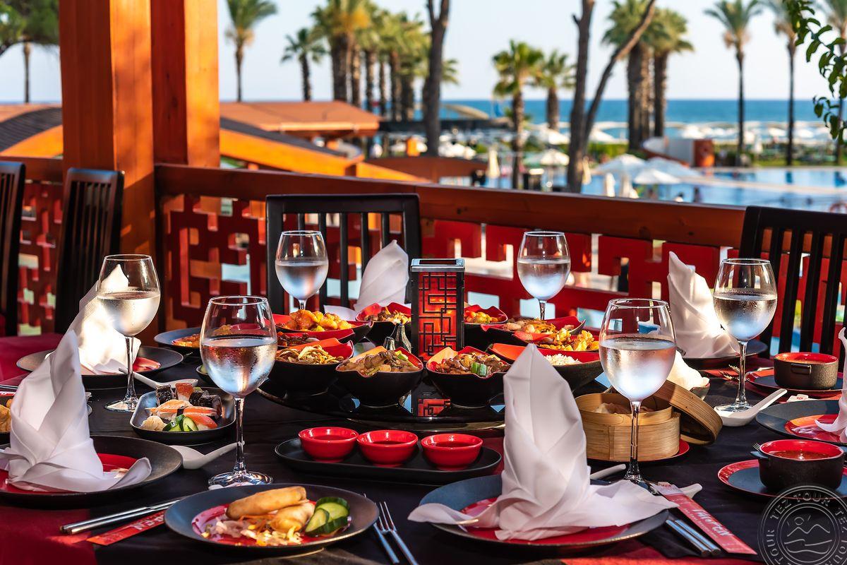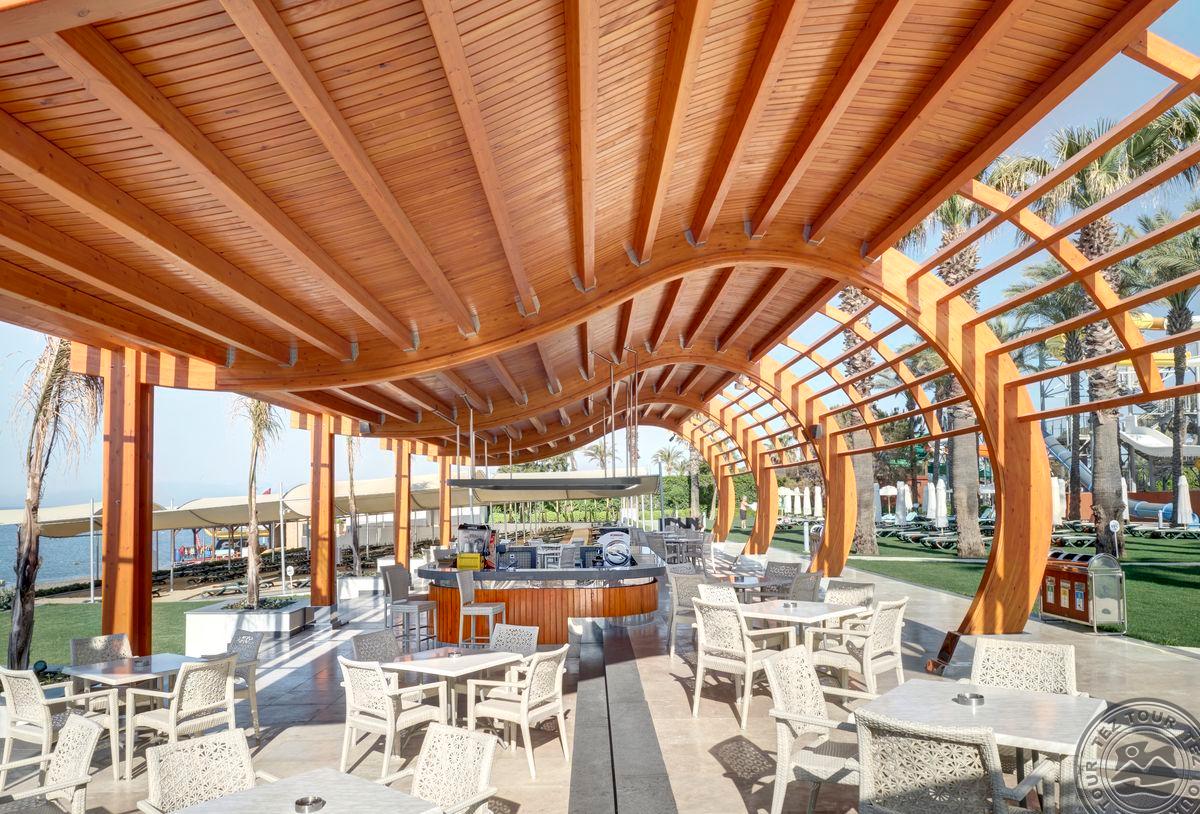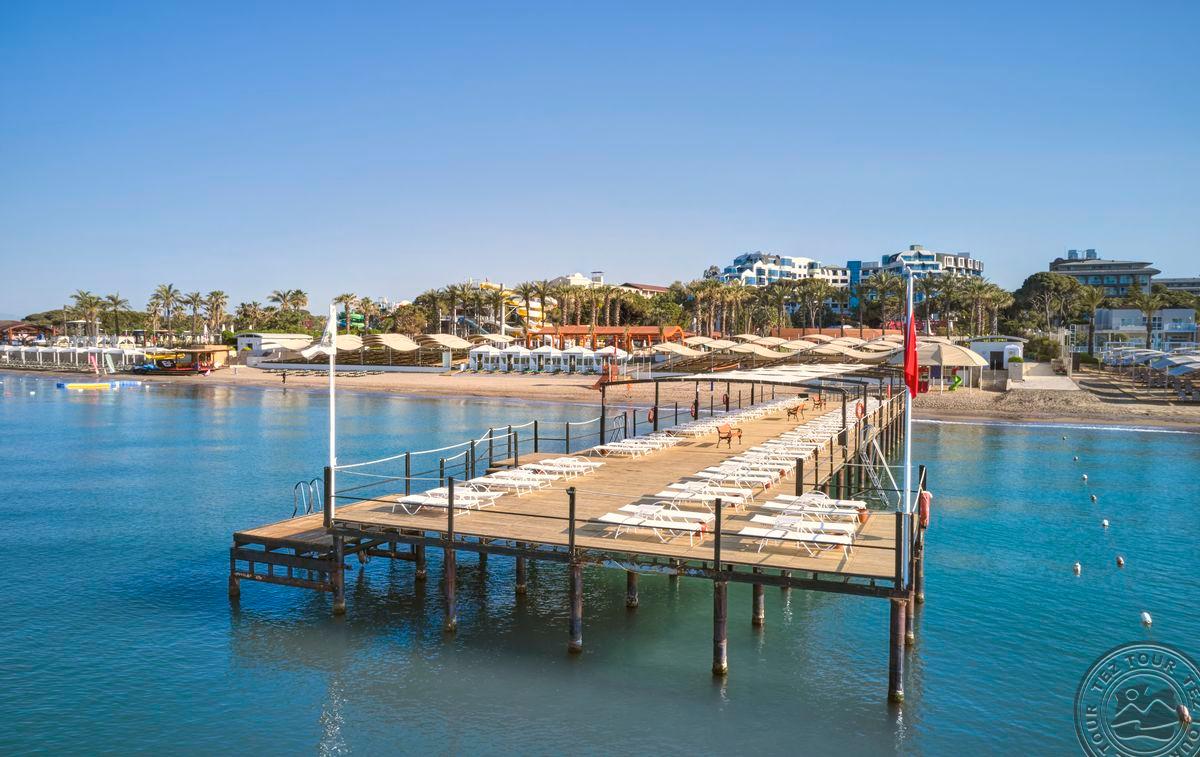 Территория:> рестораны: 1 (основной, есть диетическое и вегетарианское питание, детский уголок с буфетом) бары: 7 (один из них работает 24 часа) крытые бассейны: 1 (( переходит в открытый бассейн, подогревается в зимний сезон)) бассейны: 6 (открытые, один из них принадлежит Villa Junior Suite) спа-центр конференц-залы: 7 (на 20 - 1700 чел.) у бассейна полотенца: бесплатно химчистка (платно ) рестораны a la carte: 4 ((Турецкий, Итальянский, Интернациональный по предвариальной записи бесплатно, Тайский, Французский – плата за резервацию)) кабинет врача водные горки: 4 прачечная (платно ) Wi-Fi бесплатно (на всей территории отеля) парикмахерская магазины