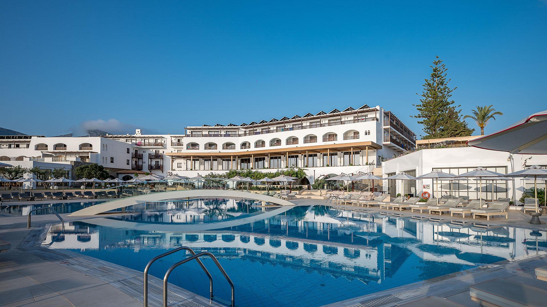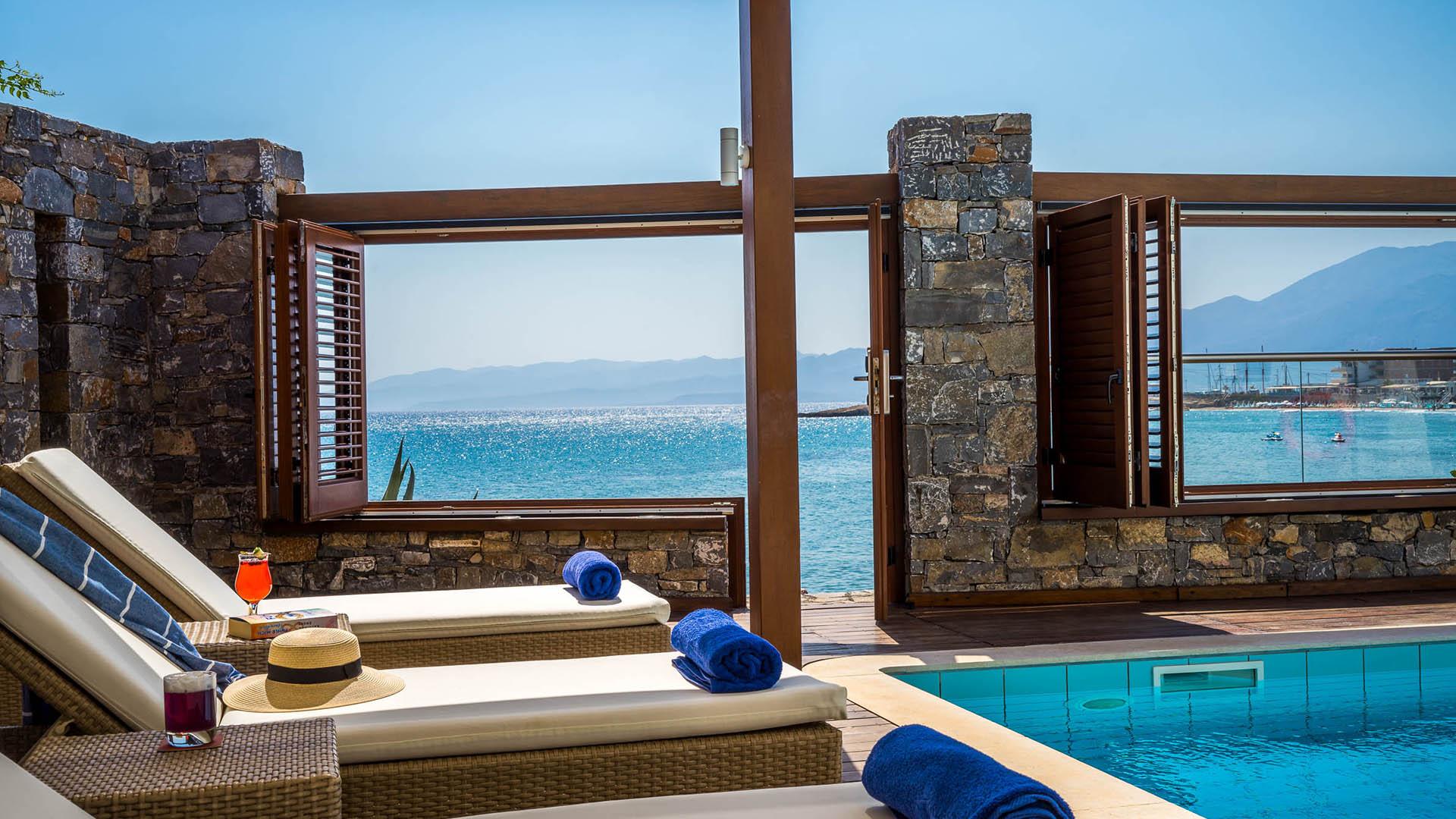 - Premium Creta Maris Pool Villa – 160 кв.м (макс. 4): 2-этажаня вилла с прямым выходом на пляж; на