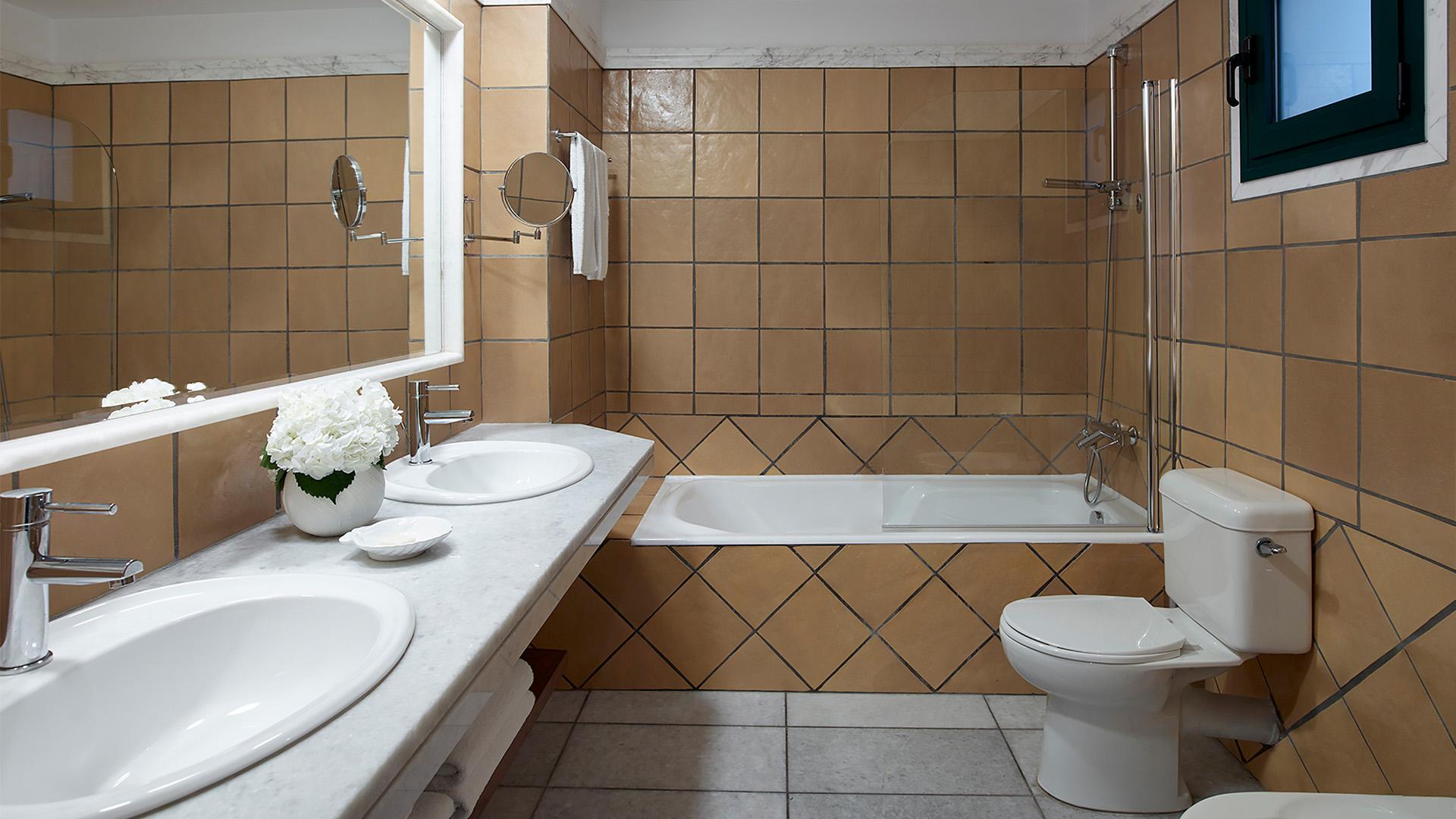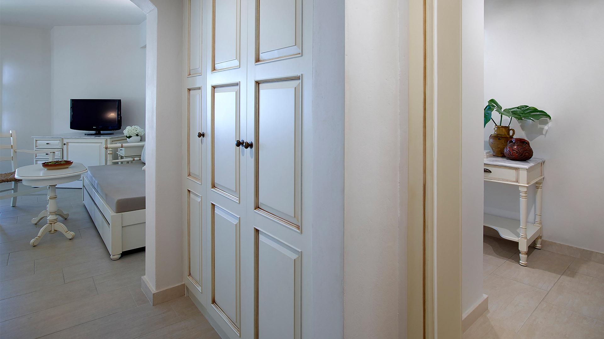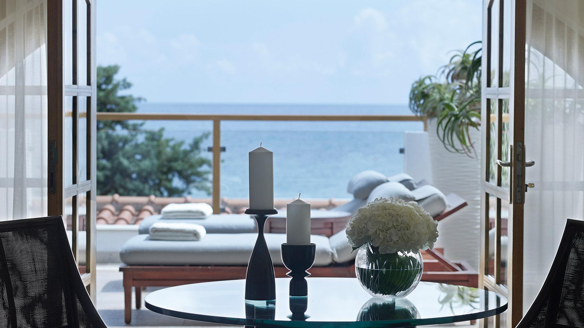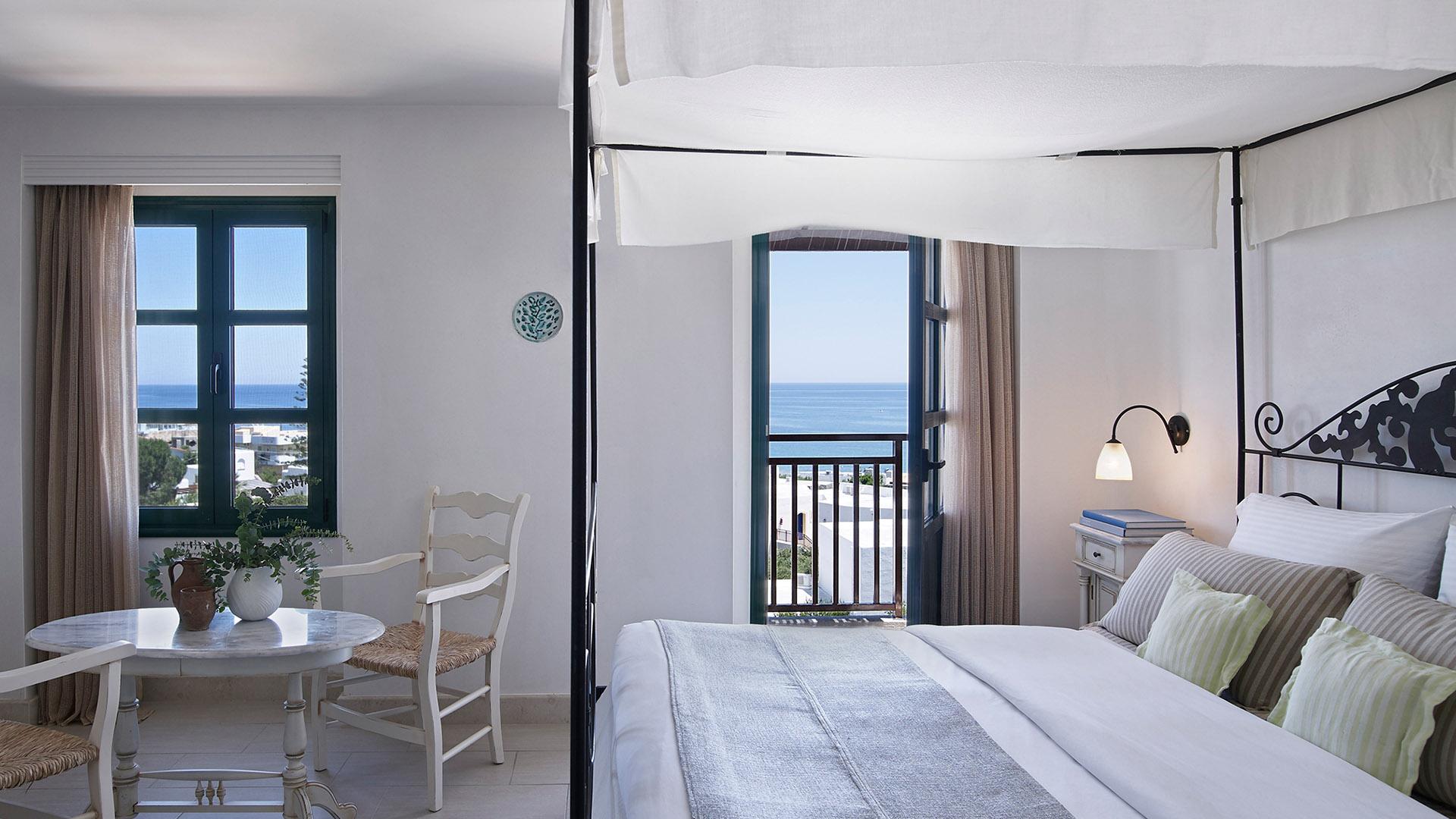 - Premium Suite Sea View – 50-74 кв.м (макс. 4): корпуса Maris и Terra; спальня с кроватью king-size либо 2 односпальными кроватями, отдельная гостиная с 2 диванами-кроватями, 1 или 2 ванные комнаты с ванной или душевой, оборудованный балкон или терраса с видом на море