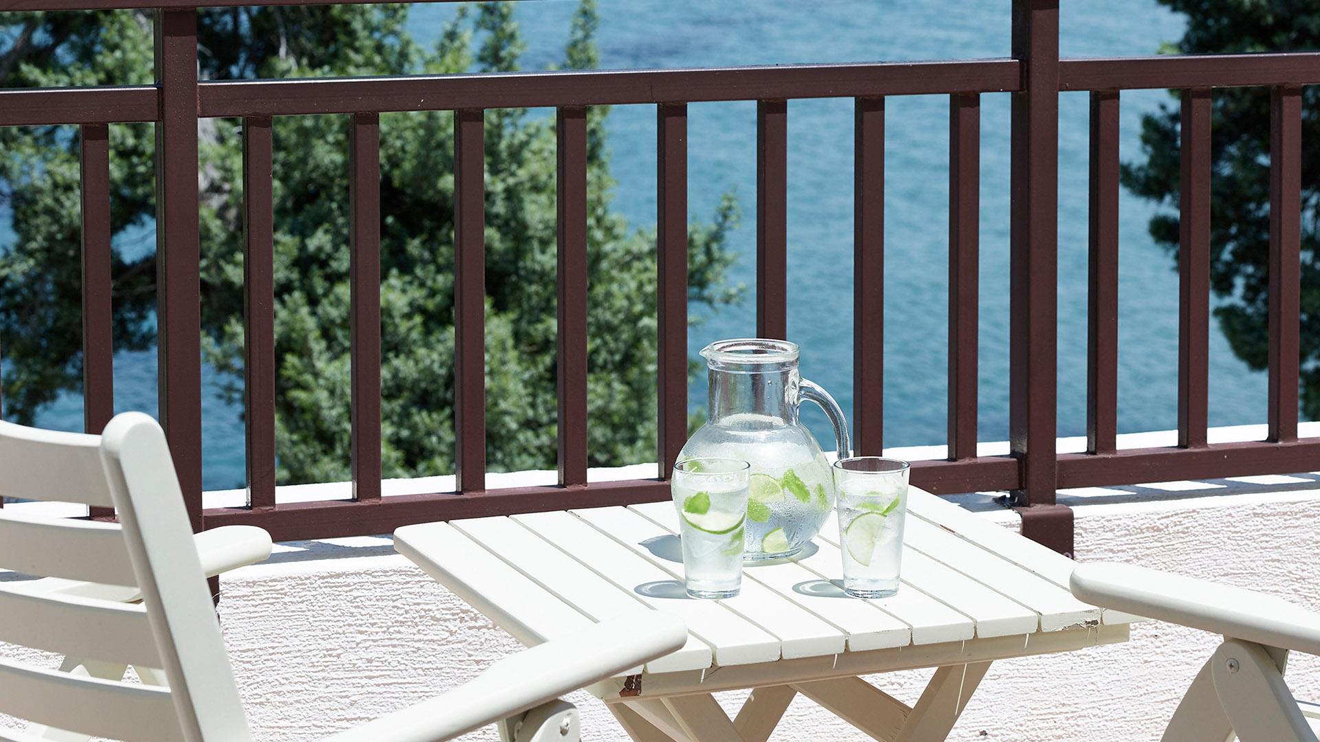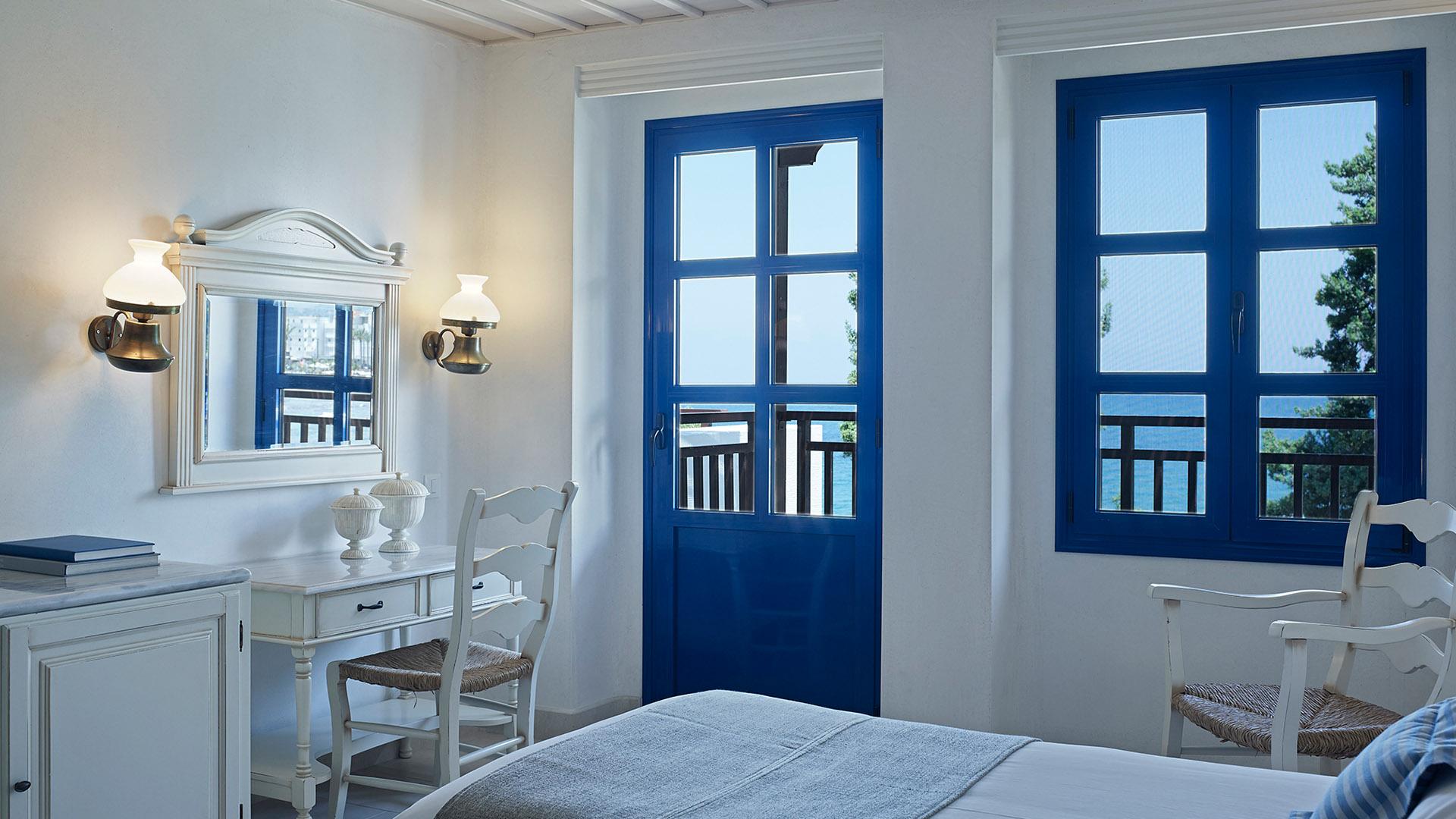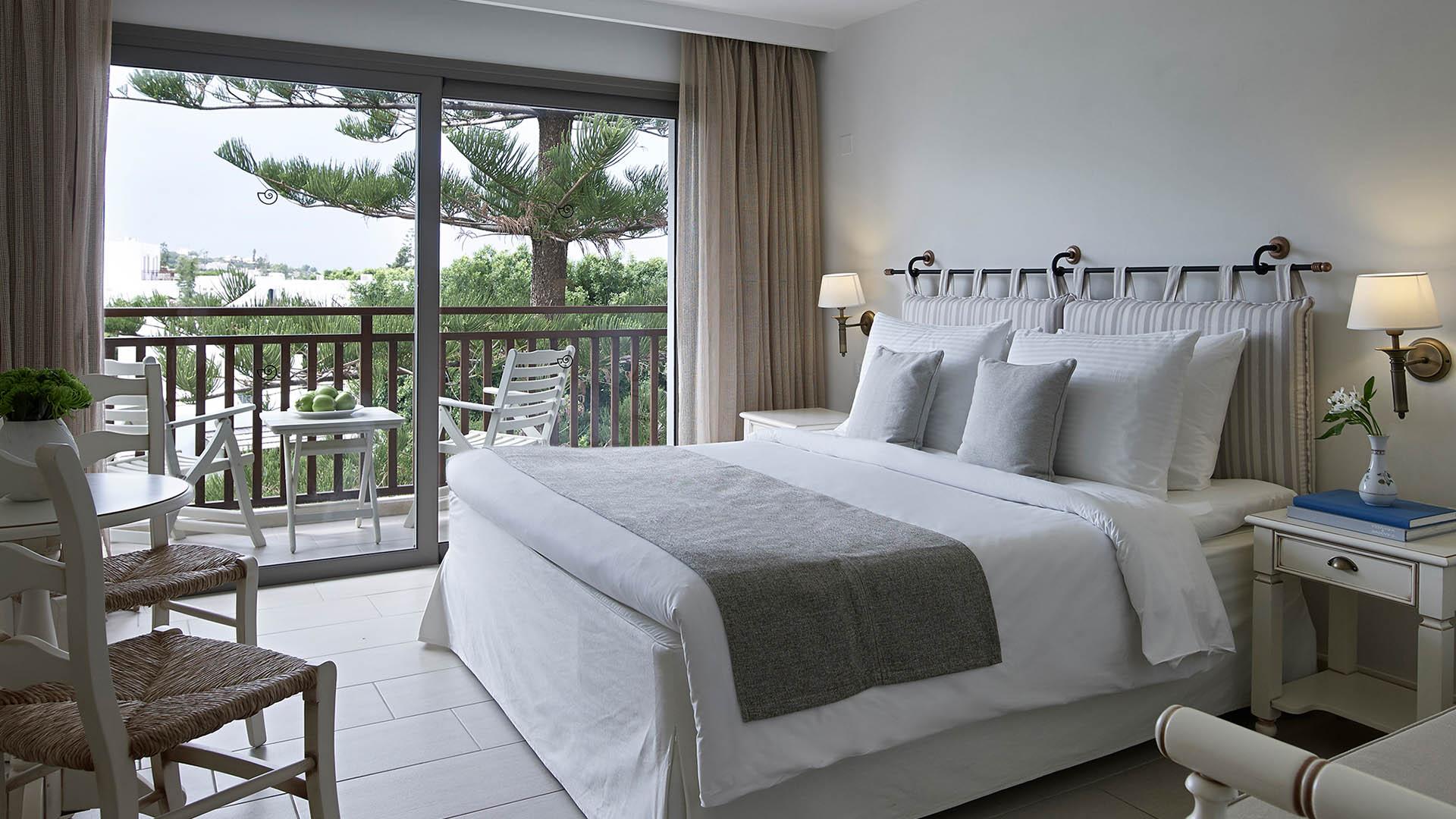 - Deluxe Room Sea View – 27-30 кв.м (макс. 3): корпуса Maris и Terra, зона бунгало; номер открытой планировки с кроватью king-size либо 2 односпальными кроватями, ванная комната с ванной или душевой, оборудованный балкон или терраса с видом на море