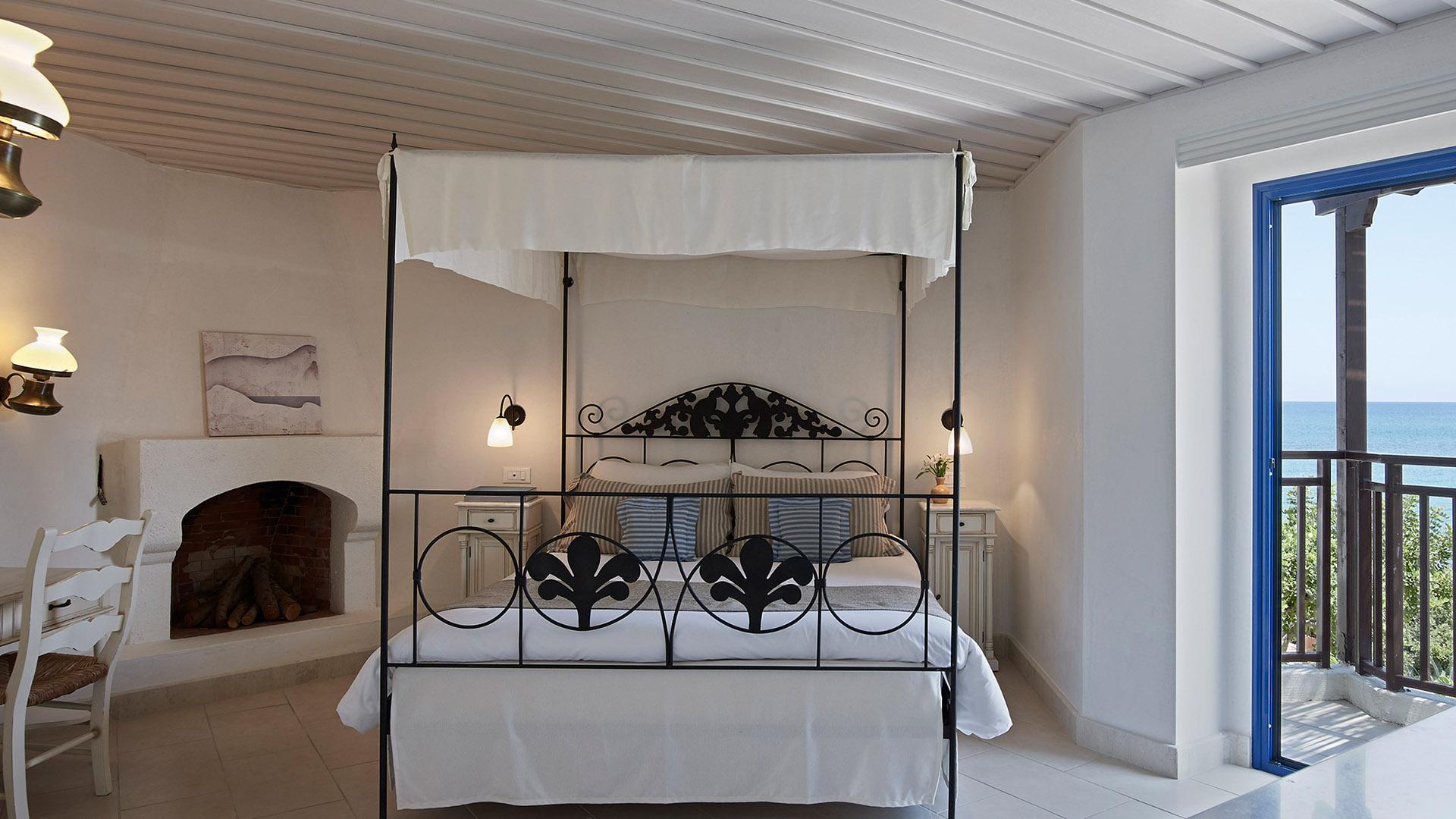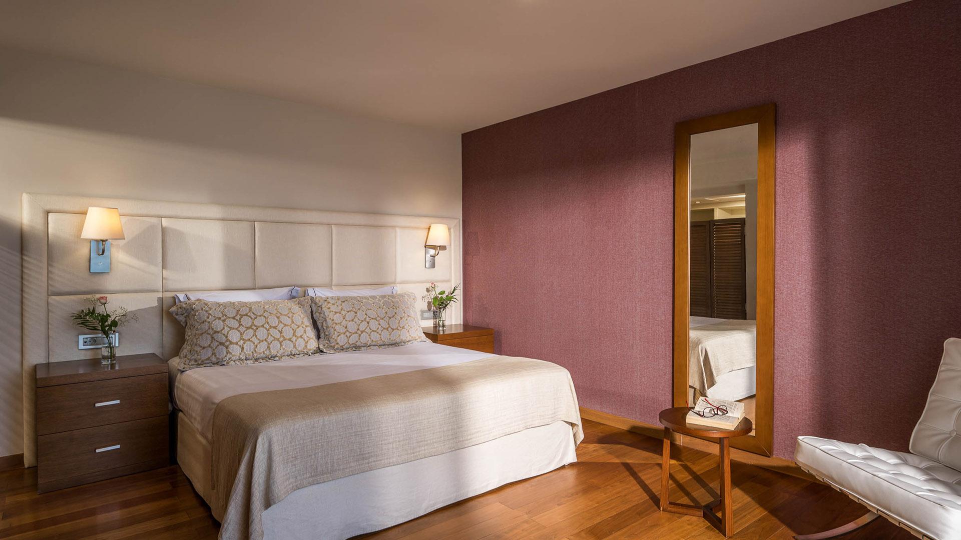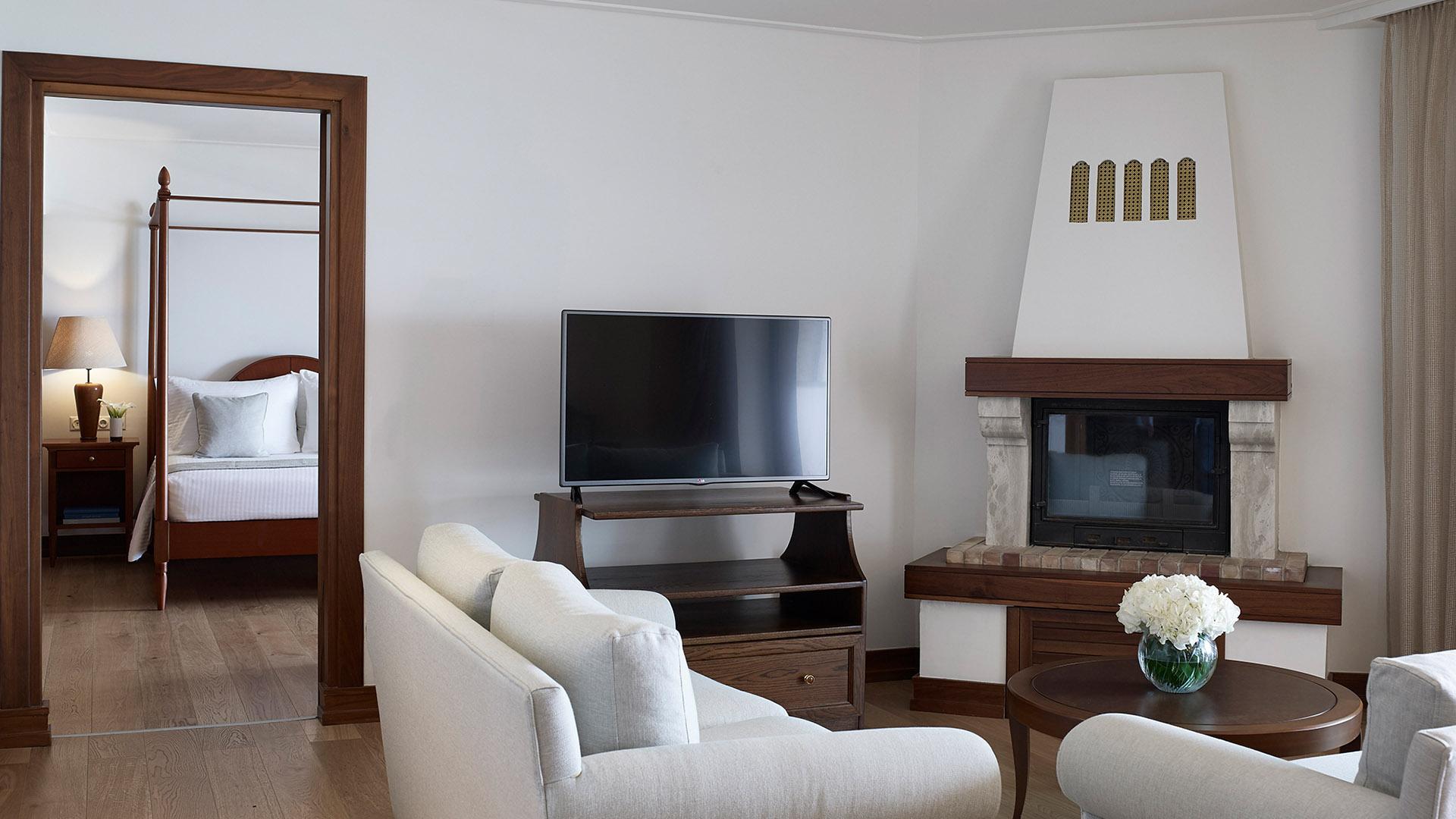 - Premium Unique Suite – 139 кв.м (макс. 4): корпус Maris; главная спальня ч кроватью king-size, ванная комната с джакузи, отдельная гостиная с камином и обеденной зоной, 2-я ванная комната с ванной и уборной, помещение для занятий фитнесом с велотренажером, сауна и душ, оборудованный балкон с видом на море. Номера могут сообщаться