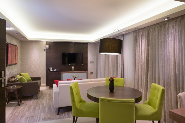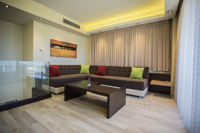 Superior Family Suite (55 м2): спальня с двуспальной кроватью, гостиная с 2 диванами-кроватями, 2 ЖК ТВ с плоским экраном 42 ", ванная комната с отдельной душевой кабиной и гидромассажем и 2 раковинами, просторная терраса с гостиной; максимальное размещение 4 взр. или 3 взр. и 1 реб.