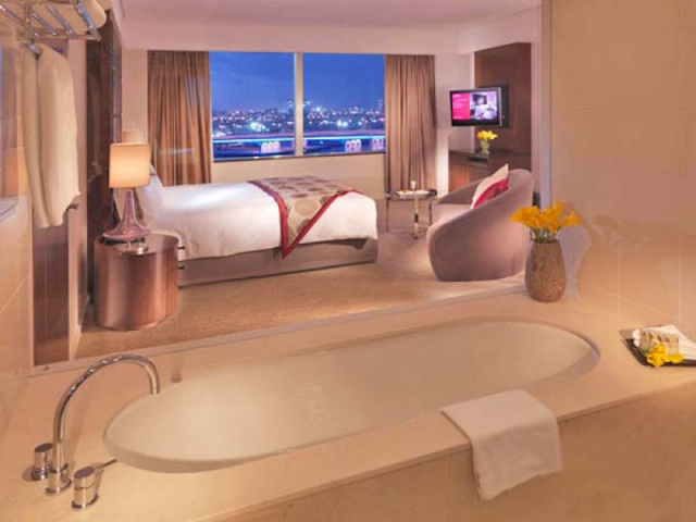 568 номеров в 2-х корпусах (все номера с видом на город, без балконов); открытый бассейн с контролем температуры воды, Интернет, магазины с товарами модных марок, сувенирные магазины, салон красоты, парикмахерская, услуги прачечной и химчистки, аренда автомобилей, автостоянка, сауна, парная, различные виды массажа