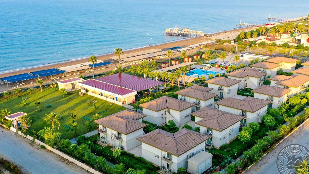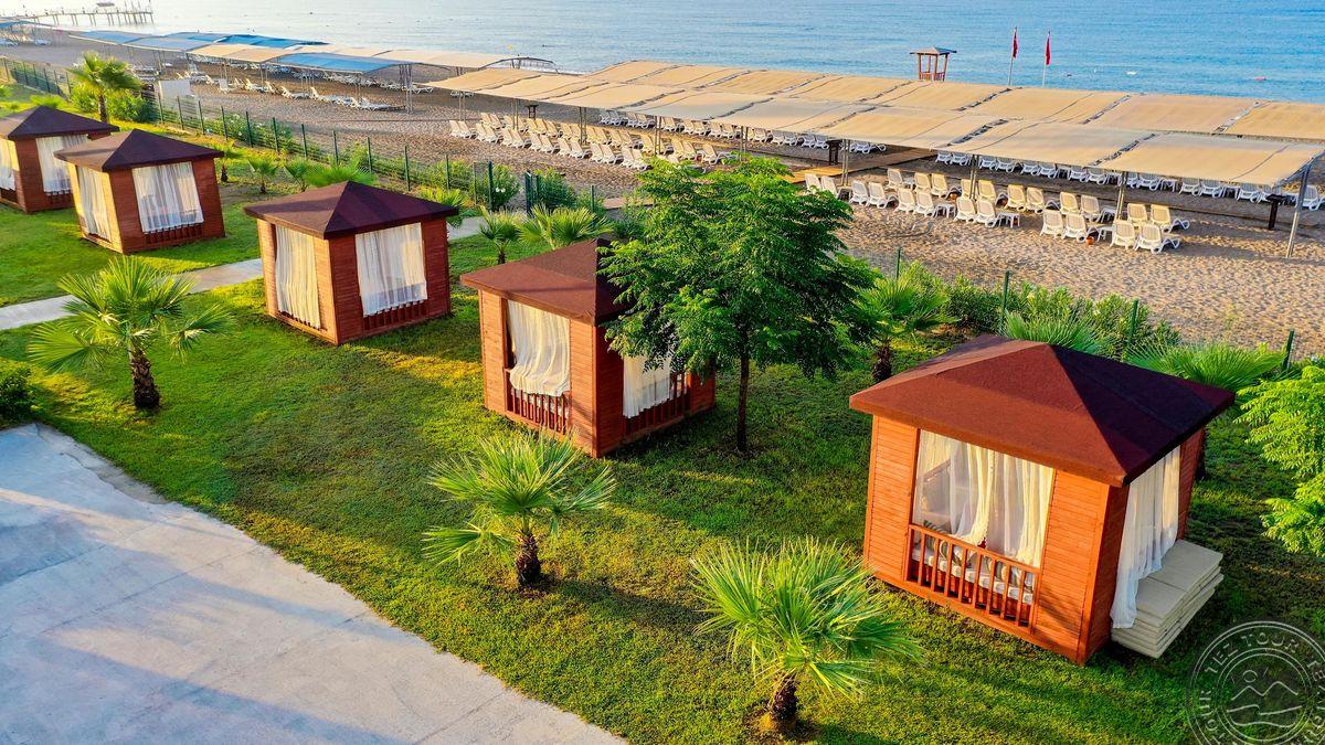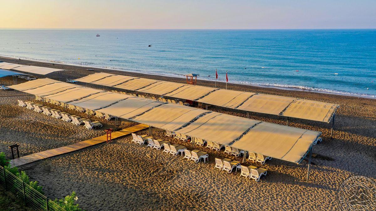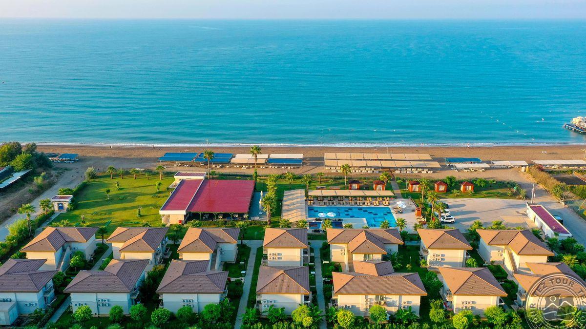 в 40 км от аэропорта, в 50 км от центра г. Анталья, в 11 км от г. Серик, на берегу моря.