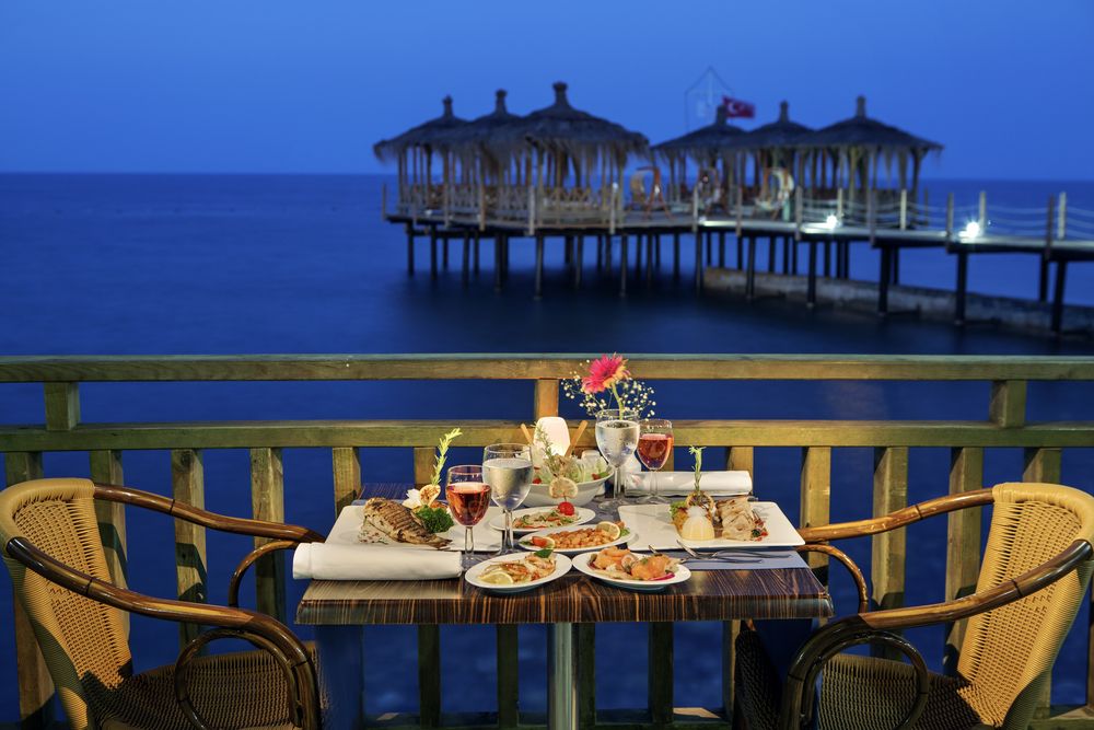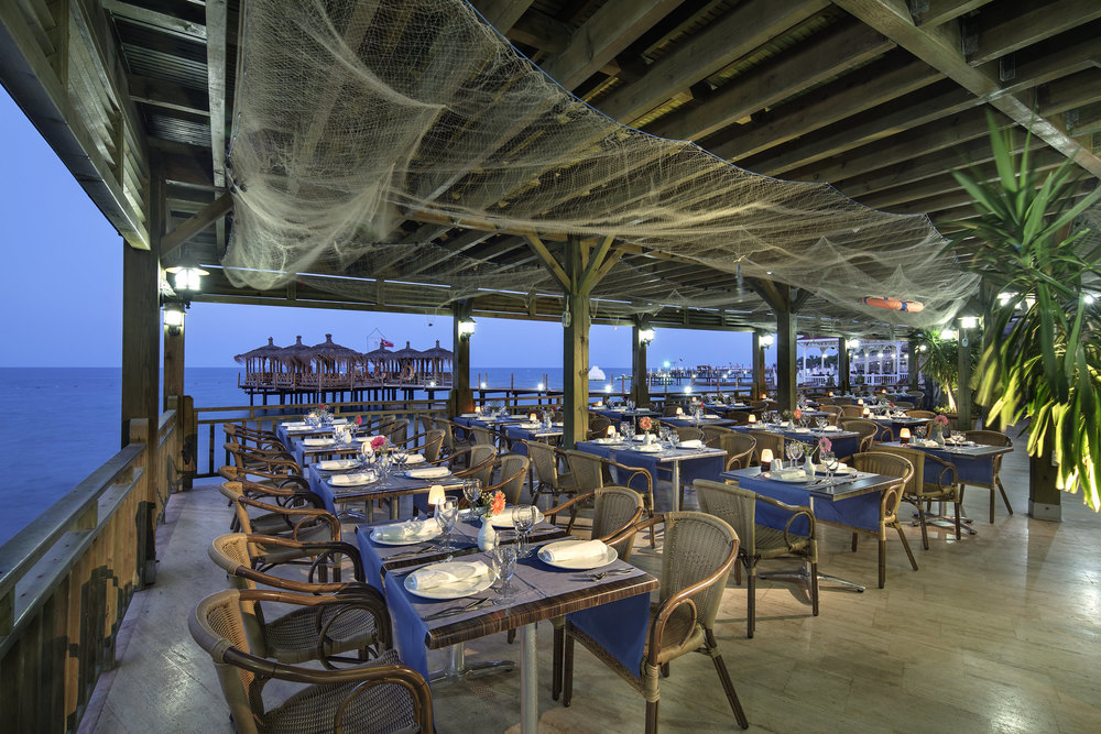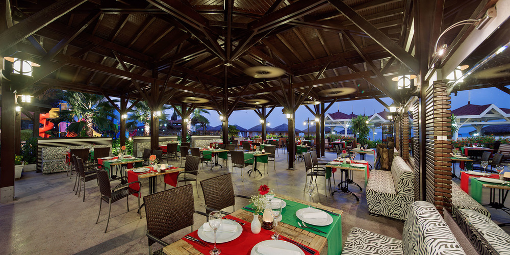 - РестораныГлавный - шведский столИтальянский (с 18:30 до 23:00) - a la carte, платноТурецкий (с 18:30 до 23:00) - a la carte, платноРыбный (с 18:30 до 23:00) - a la carte, платноМексиканский (с 18:30 до 23:00) - a la carte, платноВнимание! Посещение ресторанов a la carte 1 раз при проживании от 4 ночей - бесплатно, по предварительной резервации