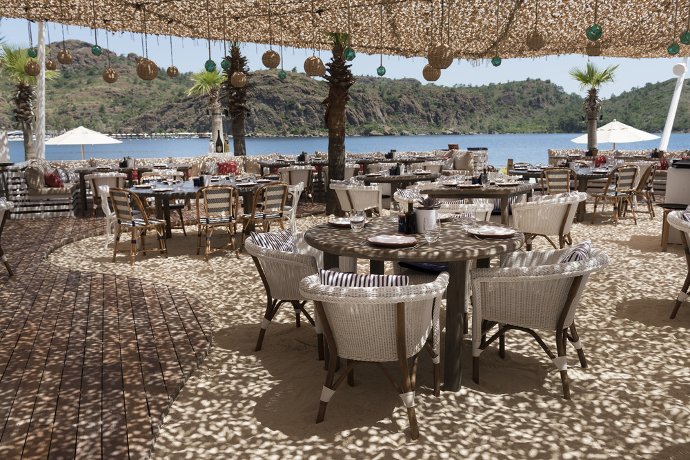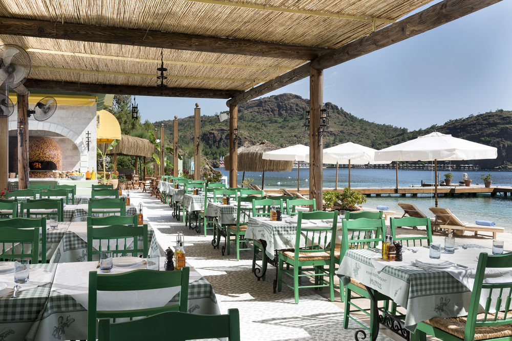 - РестораныThe Teracce (с 07:00 до 11:00) - главныйZuma - a'la carte, азиатская кухня, главное зданиеNusret - a'la carte, стейки, на пляжеManos - a'la carte, греческая кухняLe Gueritte - a'la carte, французская кухня,на пляже