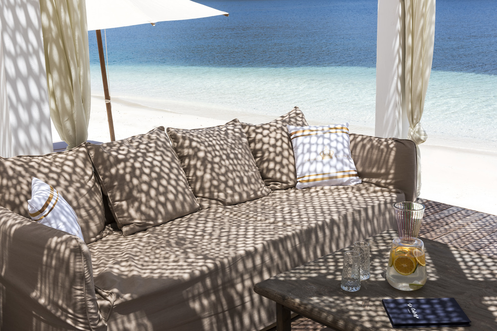 - Расстояние до пляжав пешей доступности песчаные пляжи (белый привозной песок): The Bay Beach, Silence Beach (12+), Maris Beach (для гостей номеров Suites), Manos Beach, La Guérite Beach Club(от отеля до главного пляжа можно добраться на пляжных лифтах)