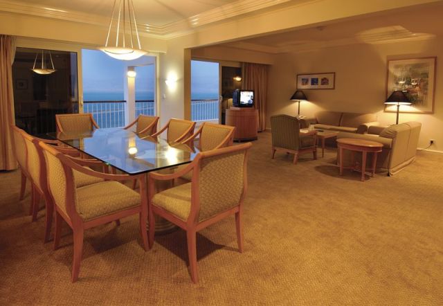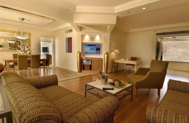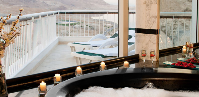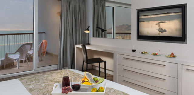 Presidential Suite:очень просторный номер; большая спальня, большая гостиная, дополнительный туалет, джакузи в ванной комнате, 2 ТВ, балкон с видом на Мертвое море и горы