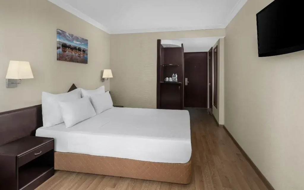 Описание номеров Dedeman Istanbul 5*:Отель состоит из 325 просторных номеров, в каждом из которых гости найдут кондиционер, телевизор, мини-бар и сейф. Если вы не уверены, что проснетесь вовремя, обратитесь к сотрудникам - в назначенный час они позвонят пожелать вам доброго утра.