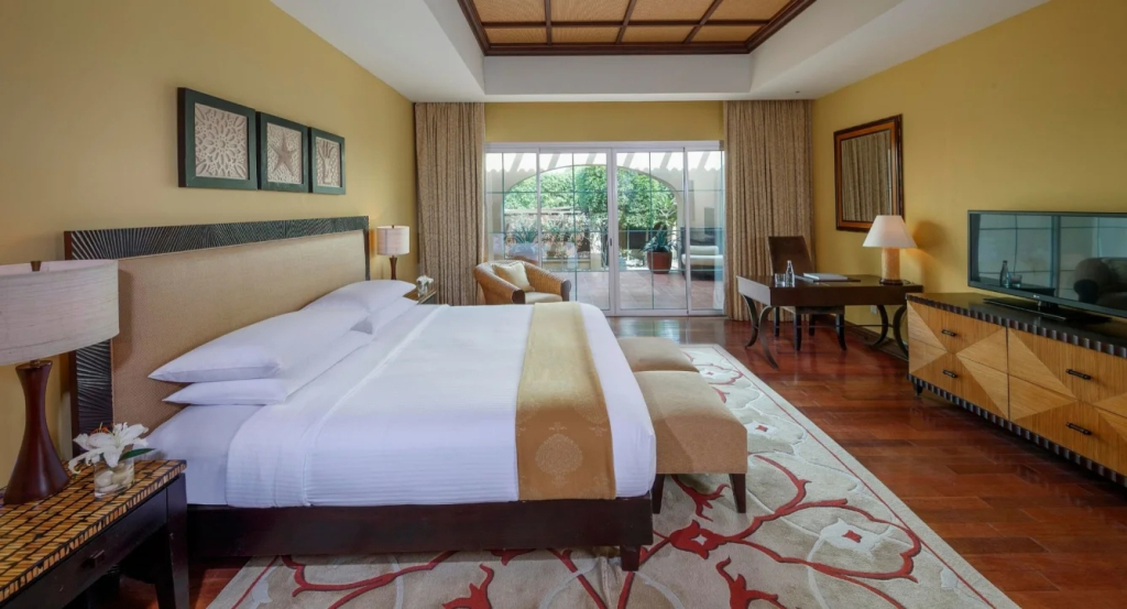 Номер уютно обставлен и оснащён необходимым, чтобы отдохнуть после долгого и насыщенного дня. Имеются душ, телевизор, мини-бар, халат и тапочки. Оснащение зависит от выбранной категории номера.