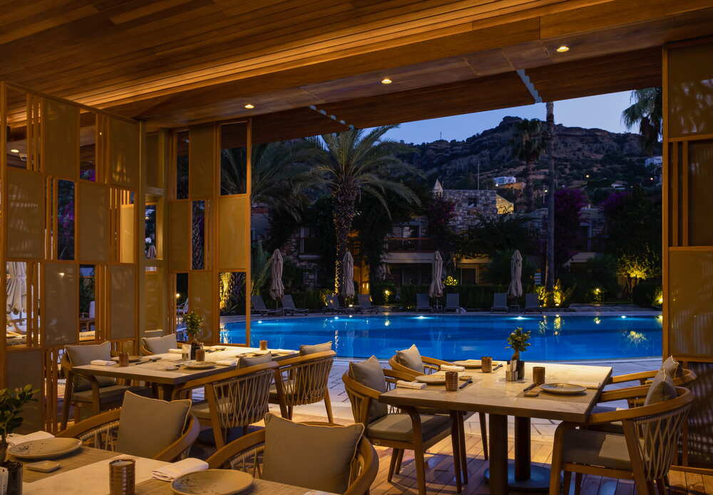 - РестораныTaş Ev (с 07:00 до 11:00) - a la carte (у бассейна)Lokanta by Divan Bodrum (с 18:00 до 23:00) - a la carte (у бассейна и пляжа)Maromi Bodrum (с 18:00 до 23:00) - a la carte (у бассейна и пляжа)