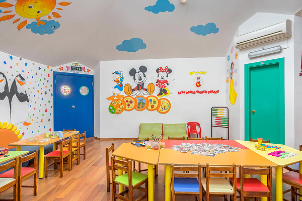 Мини-клуб (4-12 лет), дневная детская анимация, батуты, кино, мультфильмы, мини-диско, открытая игровая площадка, высокие детские стульчики, детская кровать-манеж, детский горшок, детская коляска (под депозит).