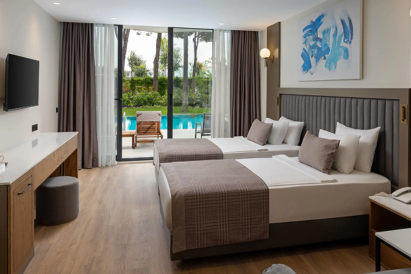 18 Standard Room Pool View (35 м², макс. 3 взрослых, балкон) — вид на бассейн.