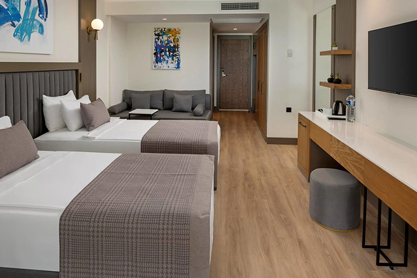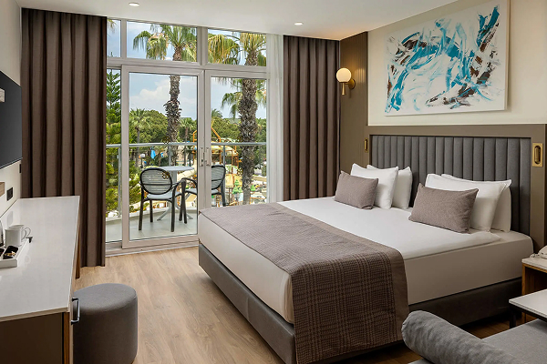 Игристое вино и фрукты в номер, цветы в номер, украшение номера, шоколадные конфеты и турецкие сладости и орешки в день заезда; резервация A’ La Carte ресторана (один раз); завтрак в номер (один раз); поздравительная открытка.