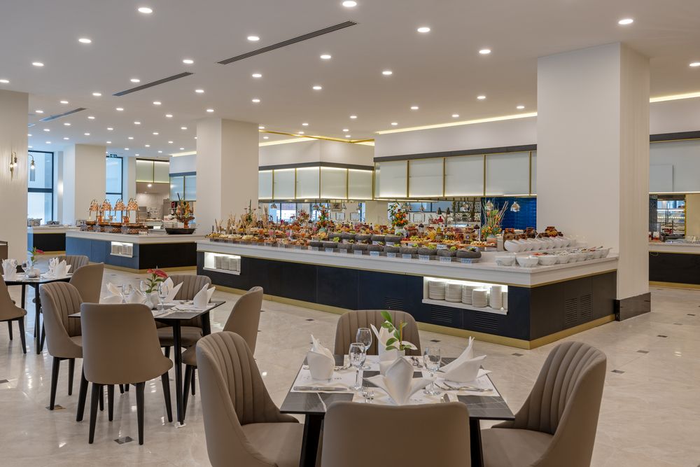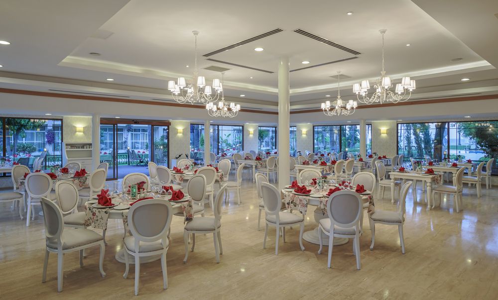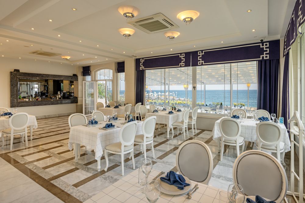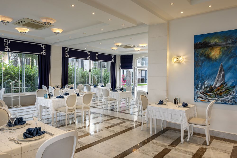 - РестораныBabil - главный, шведский стол, международная кухняVivaldi (с 19:00 до 22:00) - a la carte, итальянская кухня Muzoyaki (с 19:00 до 22:00) - a la carte, японская кухня The Mariner (с 19:00 до 22:00) - a la carte, рыбный Sofra (с 19:00 до 22:00) - a' a carte, турецкая кухня Посещение ресторанов a la carte по предварительной резервации (платно)Внимание! Посещение ресторанjd в пляжной одежде и пляжной обуви неприемлемо. На ужин предусмотрен дресс-код