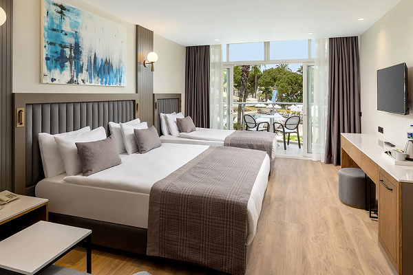 28 Standard Room Side Sea View (35 м², макс. 3 взрослых, балкон) — частичный вид на море.