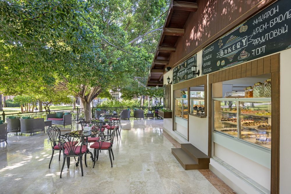 - КафеPatisserie (с 10:00 до 23:00) - кофе, горячие напитки, кондитерские изделияBenjamin Bakery (с 09:00 до 18:00) - кофе, горячие напитки, кондитерские изделия (возле Relax бассейна)Muco Coffee House (с 10:00 до 00:00) - кофе, горячие напиткиLobby Tea House (с 08:00 до 00:00) - кофе, горячие напиткиКондитерская (с 10:00 до 18:00)