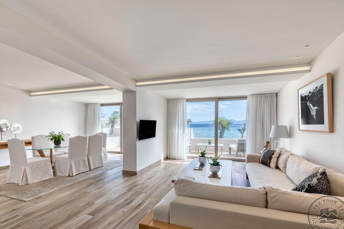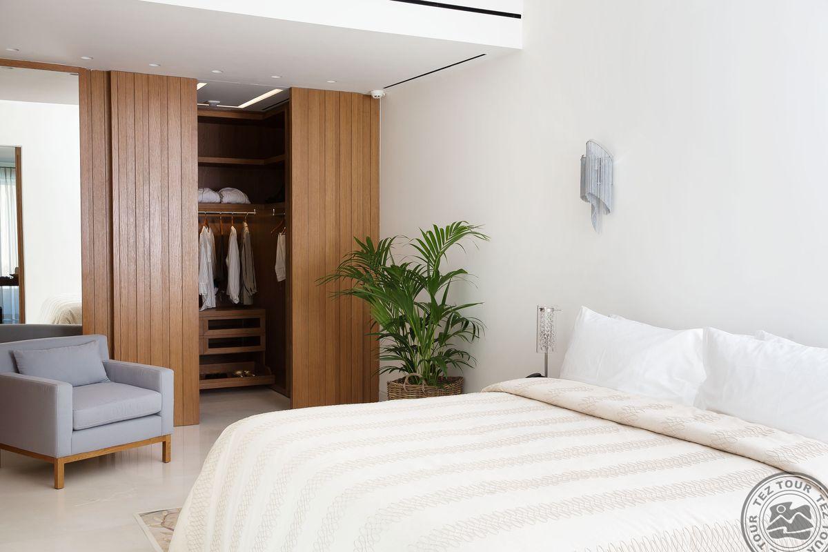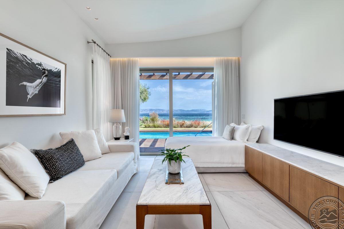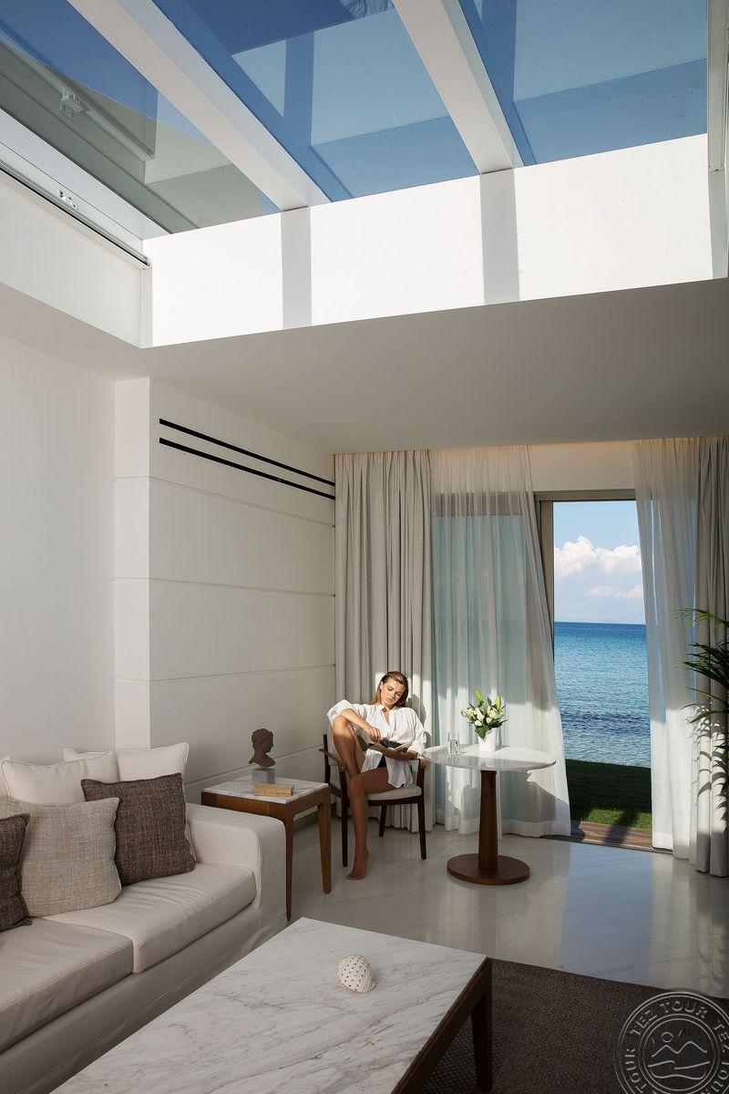 Emerald Suite Beachfront (в основном 2-этажном здании, Seafront Wing, вид на море и оливковый сад, на линии пляжа, спальня и гостиная, осн. кровать – двуспальная king-size, доп. – односпальная кровать, 2 ванные комнаты с душем, привилегии Haute Living Selection, макс. 3 чел., 64 м2);