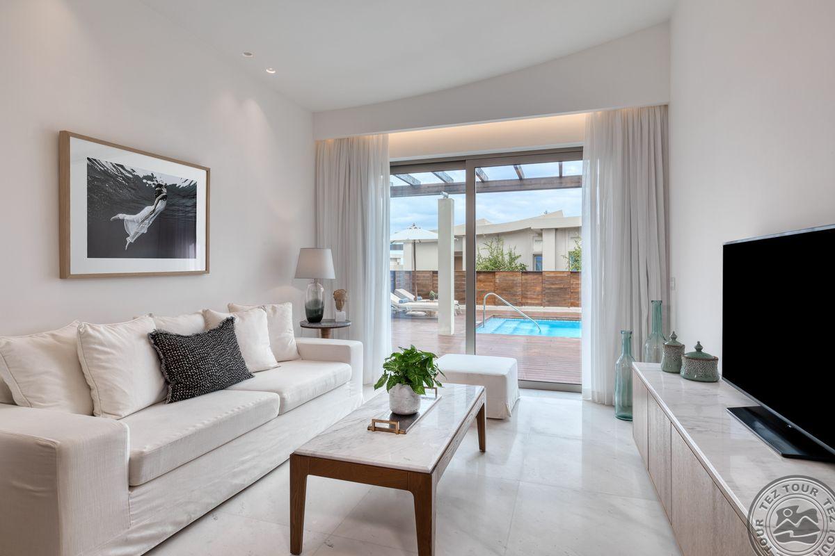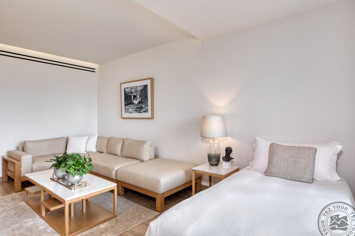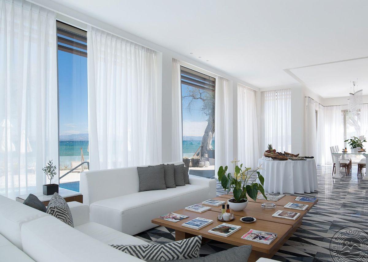 Emerald Suite Beachfront (в основном 2-этажном здании, Seafront Wing, вид на море и оливковый сад, на линии пляжа, спальня и гостиная, осн. кровать – двуспальная king-size, доп. – односпальная кровать, 2 ванные комнаты с душем, привилегии Haute Living Selection, макс. 3 чел., 64 м2);