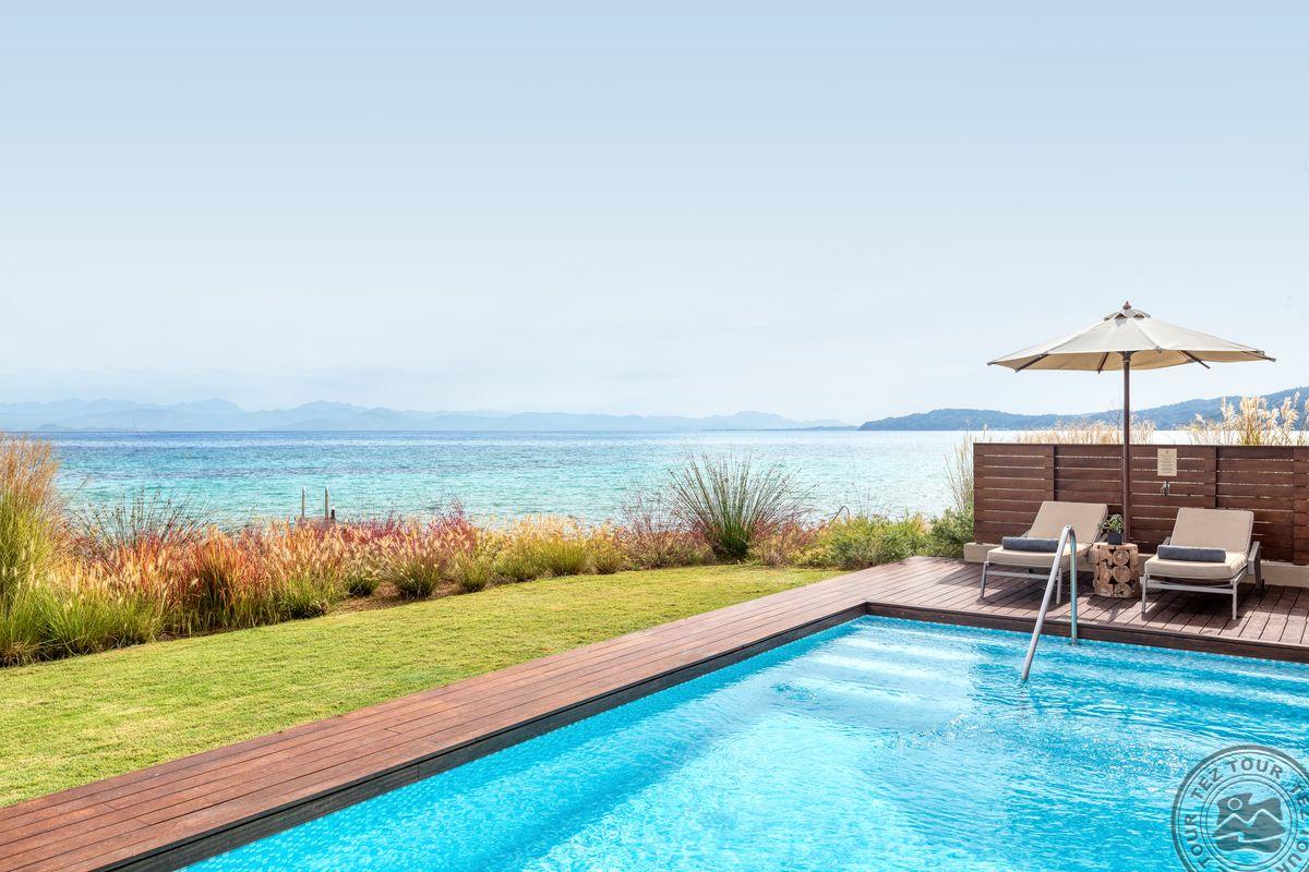 Grand Pavilion SV with Jacuzzi and Pool (в одноэтажном здании, Seafront Wing, в зоне Exclusive Area, вид на море, спальня и спальня с зоной гостиной, осн. кровать – двуспальная king-size, 2 ванные комнаты, доп. – односпальная кровать, терраса с частным бассейном (25 м2) и 2 открытых джакузи, 2 душа на открытом воздухе, привилегии Haute Living Selection, макс. 5 чел., 195–220 м2 (внутри 85-110 м2));