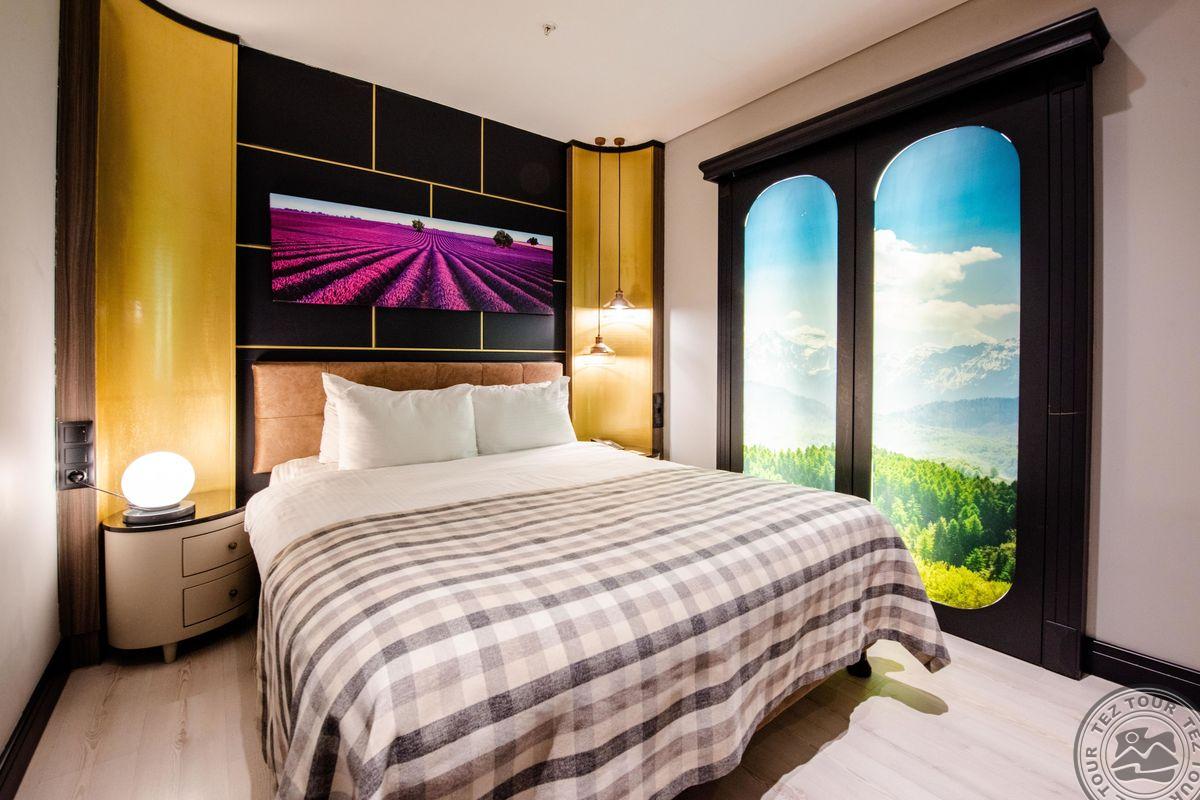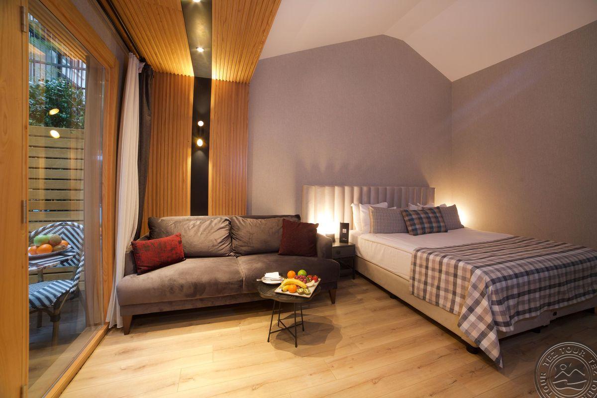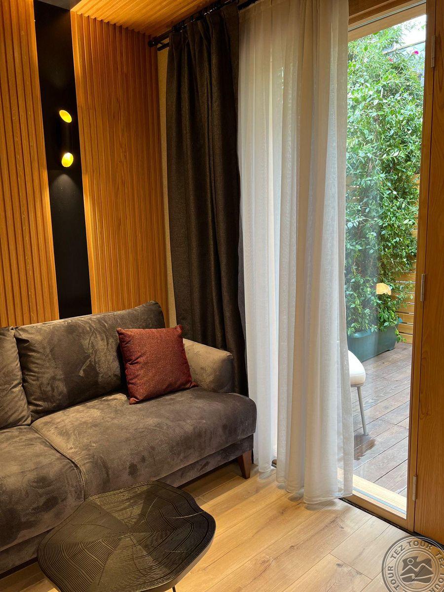 1 Superior Room (на верхнем этаже, вид на город, кофемашиина, Ipad-док станция, халат, утюг и гладильная доска, балкон, макс. 2+1 чел., 34 м2).