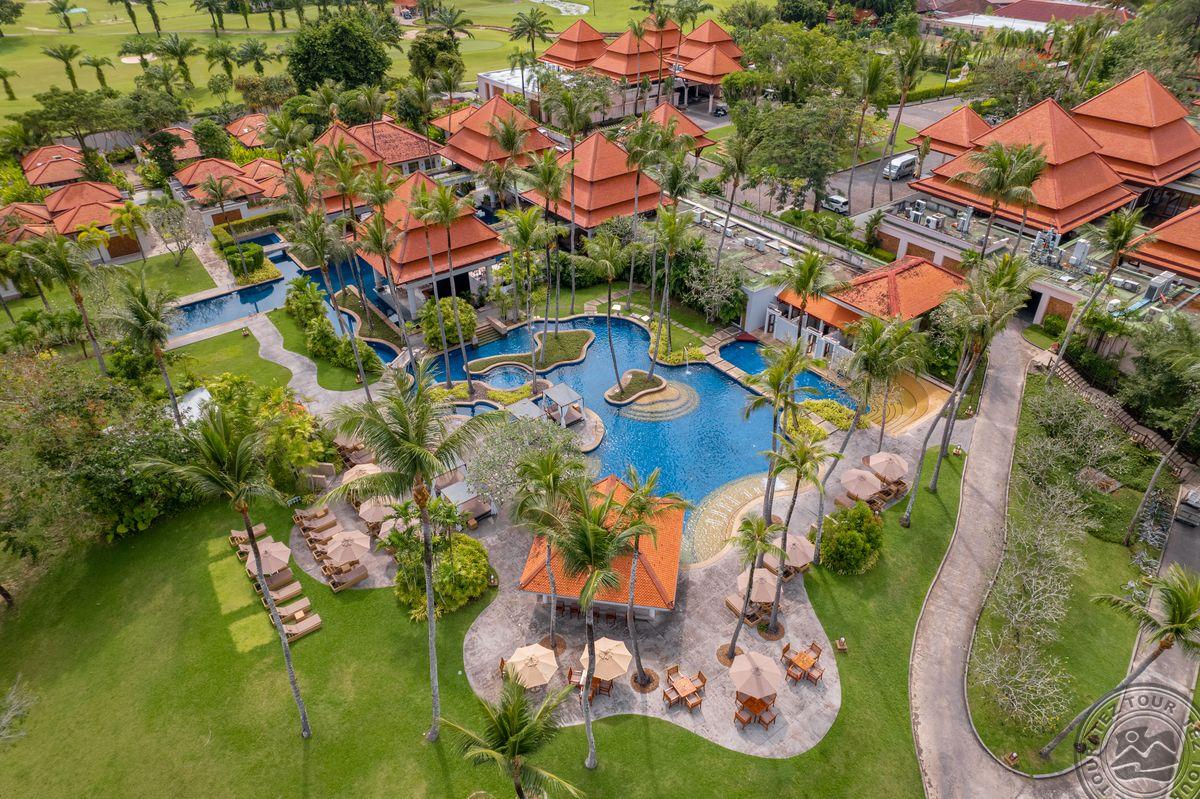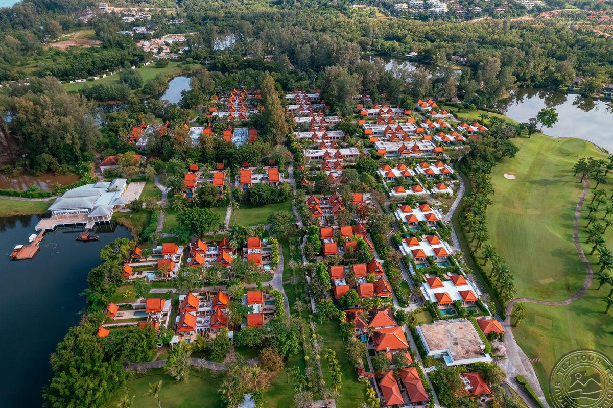 в 22 км от аэропорта, в 21 км от центра бухты Патонг, на северо-западном побережье острова Пхукет, в бухте Bang Tao, рядом с полями для гольфа.