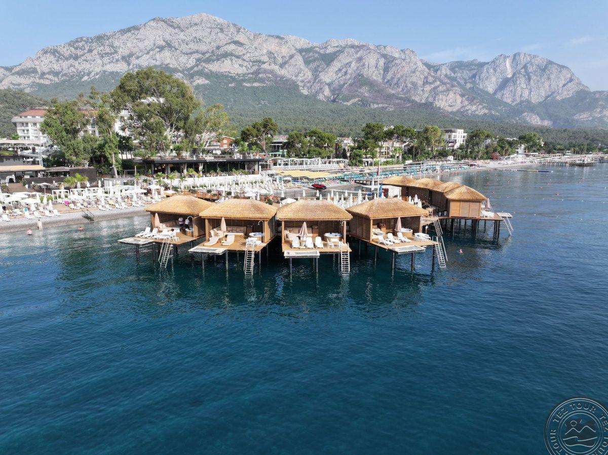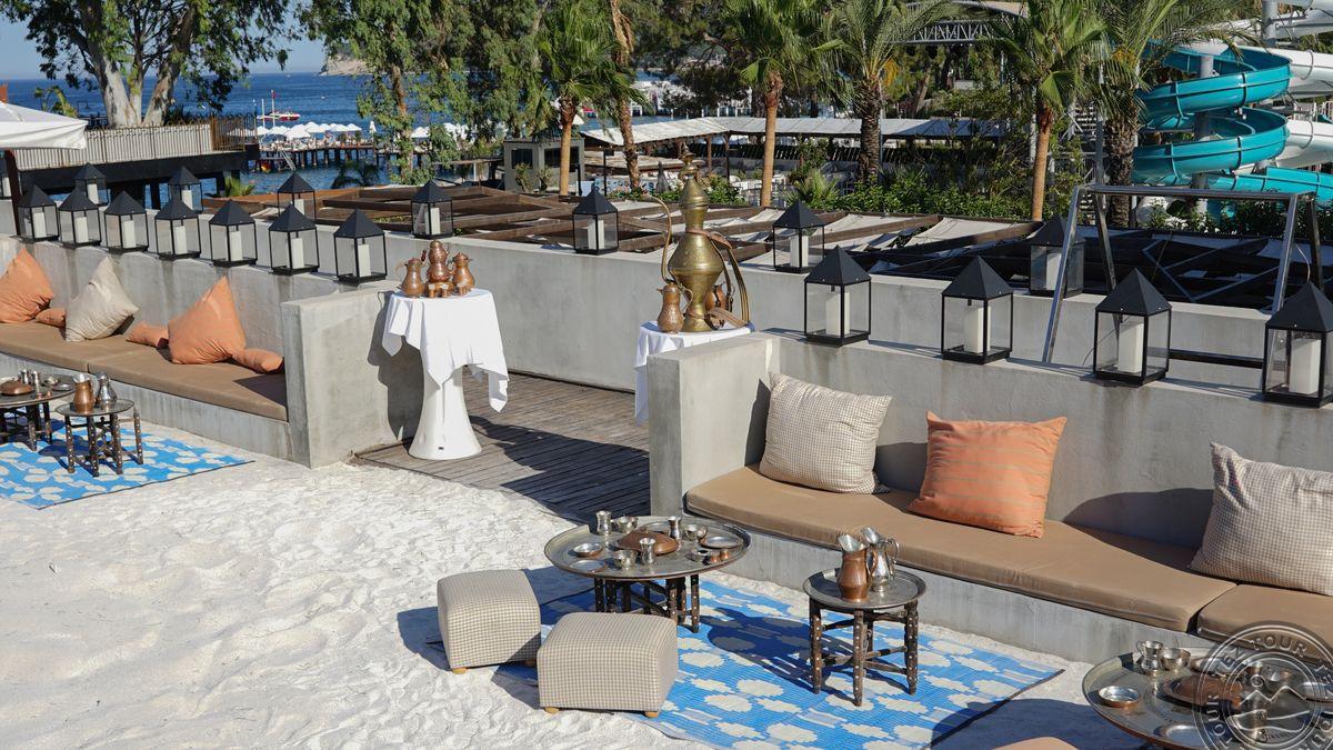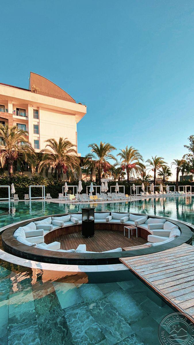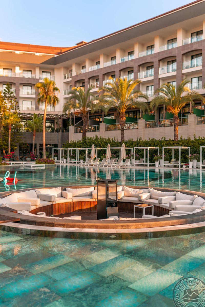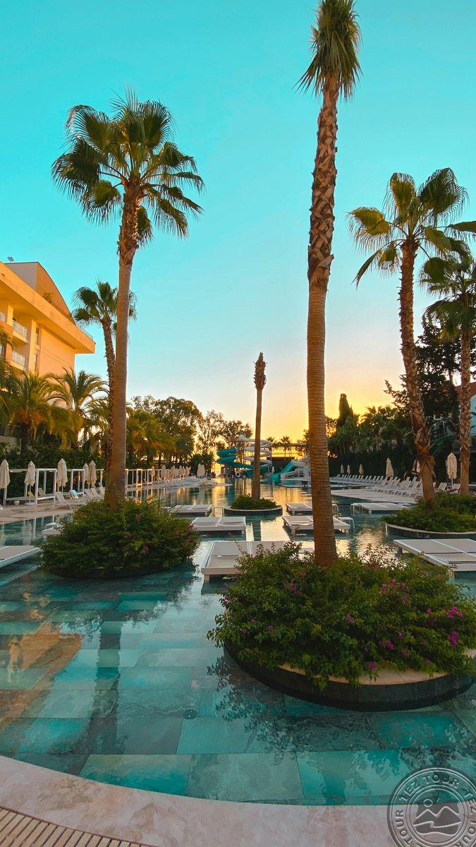 Территория:> рестораны: 1 (основной, есть диетическое питание) бары: 7 крытые бассейны: 2 (бассейн с подогревом (в зимний период); бассейн джакузи) бассейны: 1 (открытый) спа-центр у бассейна полотенца: бесплатно у бассейна зонтики, шезлонги: бесплатно рестораны a la carte: 4 (турецкий, средиземноморский, Steak House, барбекю - по предварительной записи, плата за резервацию) кабинет врача (платно) водные горки: 4 прачечная Wi-Fi есть магазины