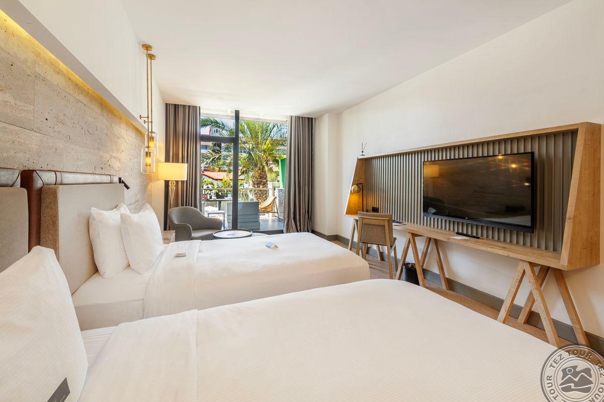 35 duplex family room (2 этажа, 2 спальни, ванная комната, макс. 4 чел., 55 м2); - номера с видом на горы или море;