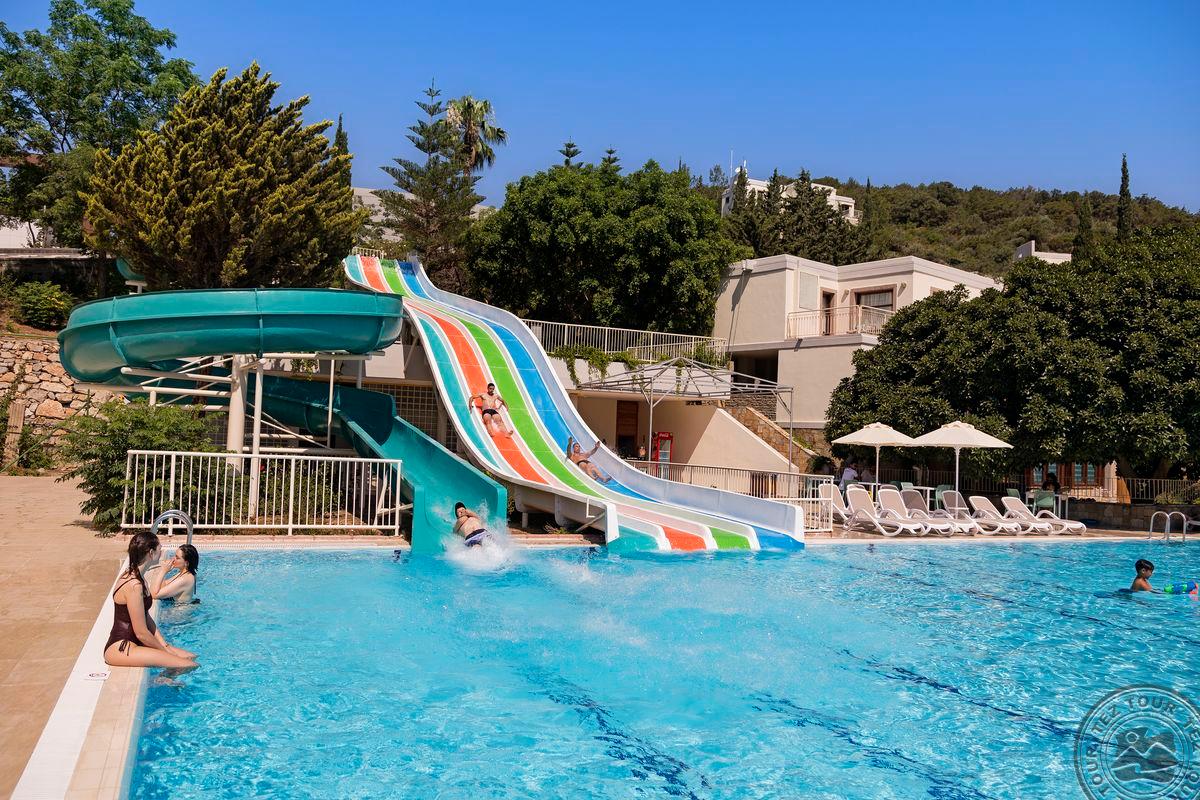 в 23 км от аэропорта Миласа Бодрума, в 208 км от аэропорта Измира, в 191 км от аэропорта Даламана, в 10 км от центра Бодрума, в 5 км от поселка Торба, в 10 км от Гюверджинлик, на берегу моря.