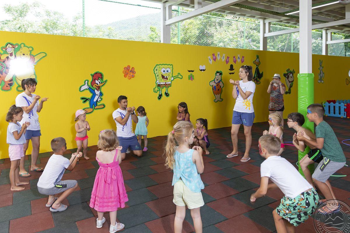 Детям:> детский клуб (4–12 лет) детская площадка анимационная программа для детей детская дискотека детские бассейны: 2 (один из них с горками) детский буфет крытый бассейн