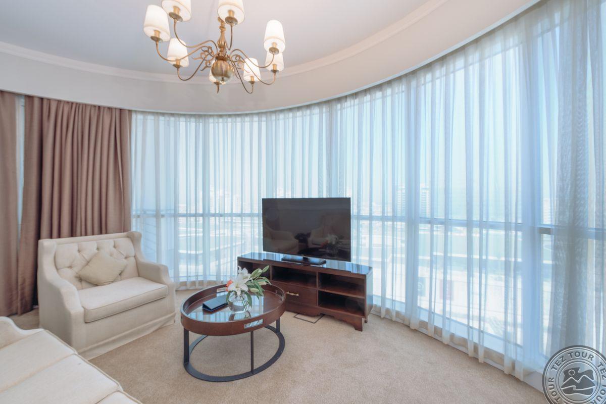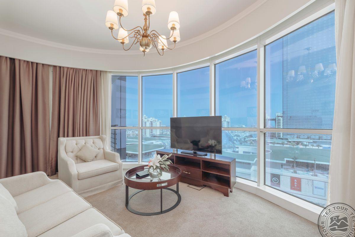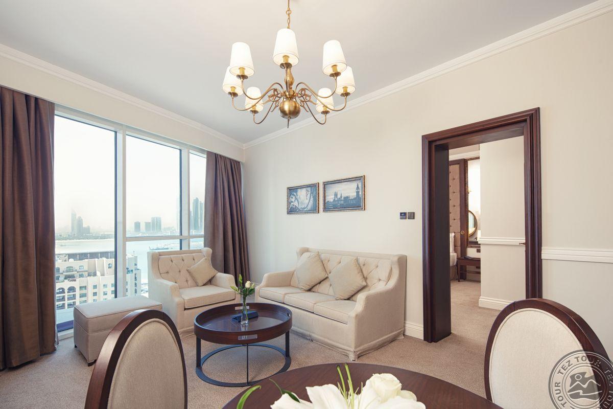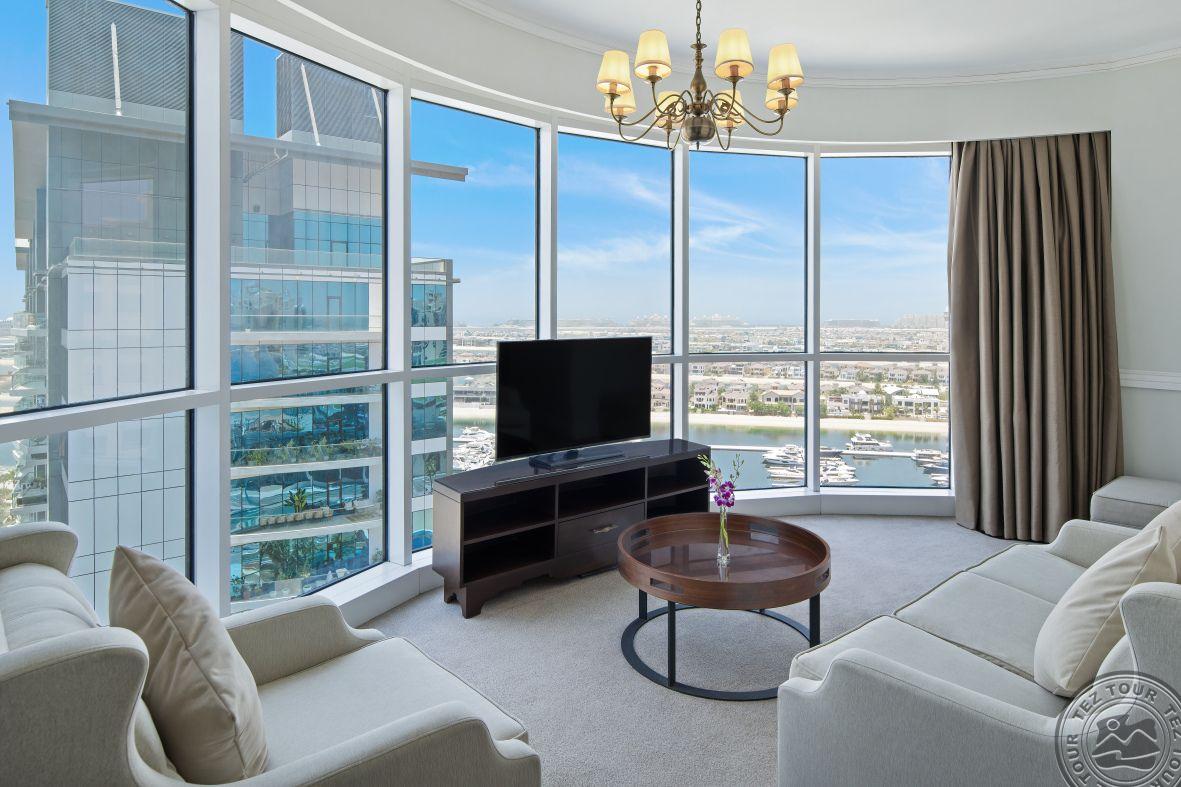31 Deluxe Suite (1–15 этажи, вид на Дубаи Марина, Персидский залив и Пальму, гостиная, спальня, кровать king-size, балкон, макс. 3 или 2+2 чел., 56 м2, привилегии),