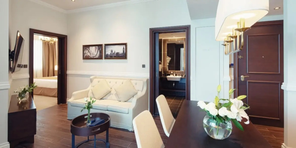 Номер уютно обставлен и оснащён необходимым, чтобы отдохнуть после долгого и насыщенного дня. Имеются будильник, душ, телевизор, мини-бар, халат и тапочки. Перечисленные услуги есть не во всех номерах.