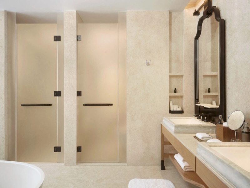 В номере вы найдёте душ, телевизор, мини-бар, халат и тапочки. Оснащение зависит от выбранной категории номера.