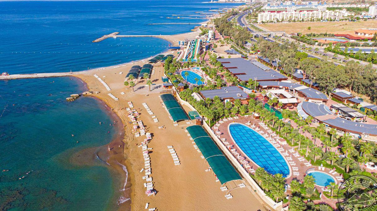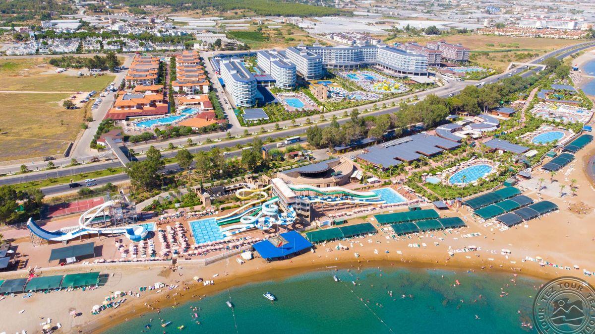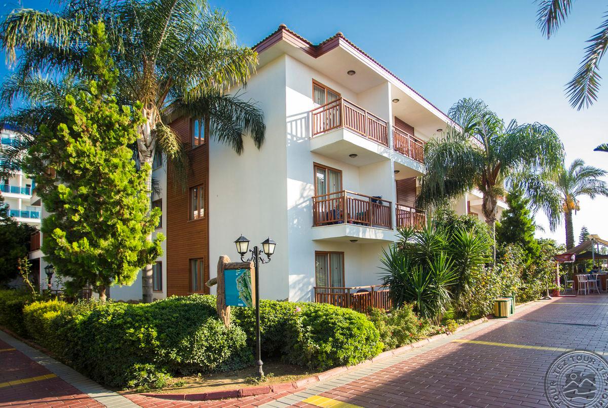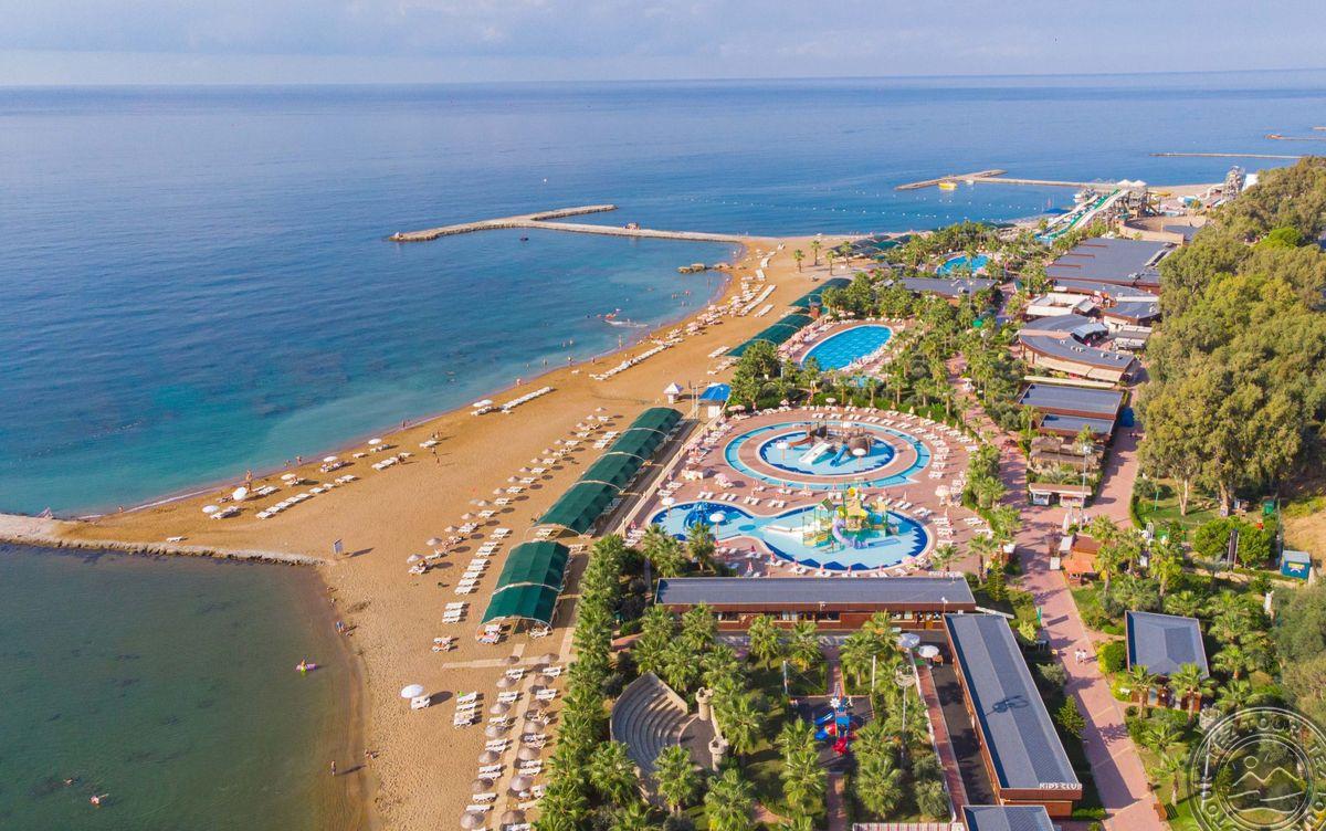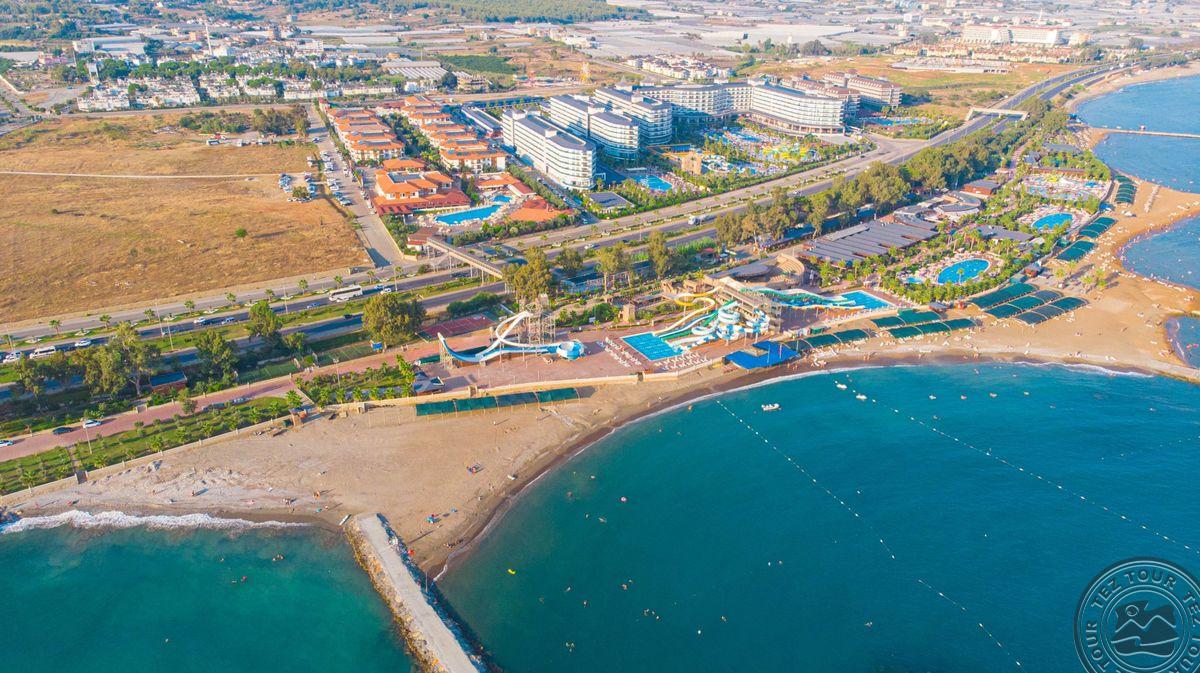 в 100 км от аэропорта г. Анталья, в 18 км от г. Аланья, в 100 м через дорогу от собственного пляжа по подземному переходу.