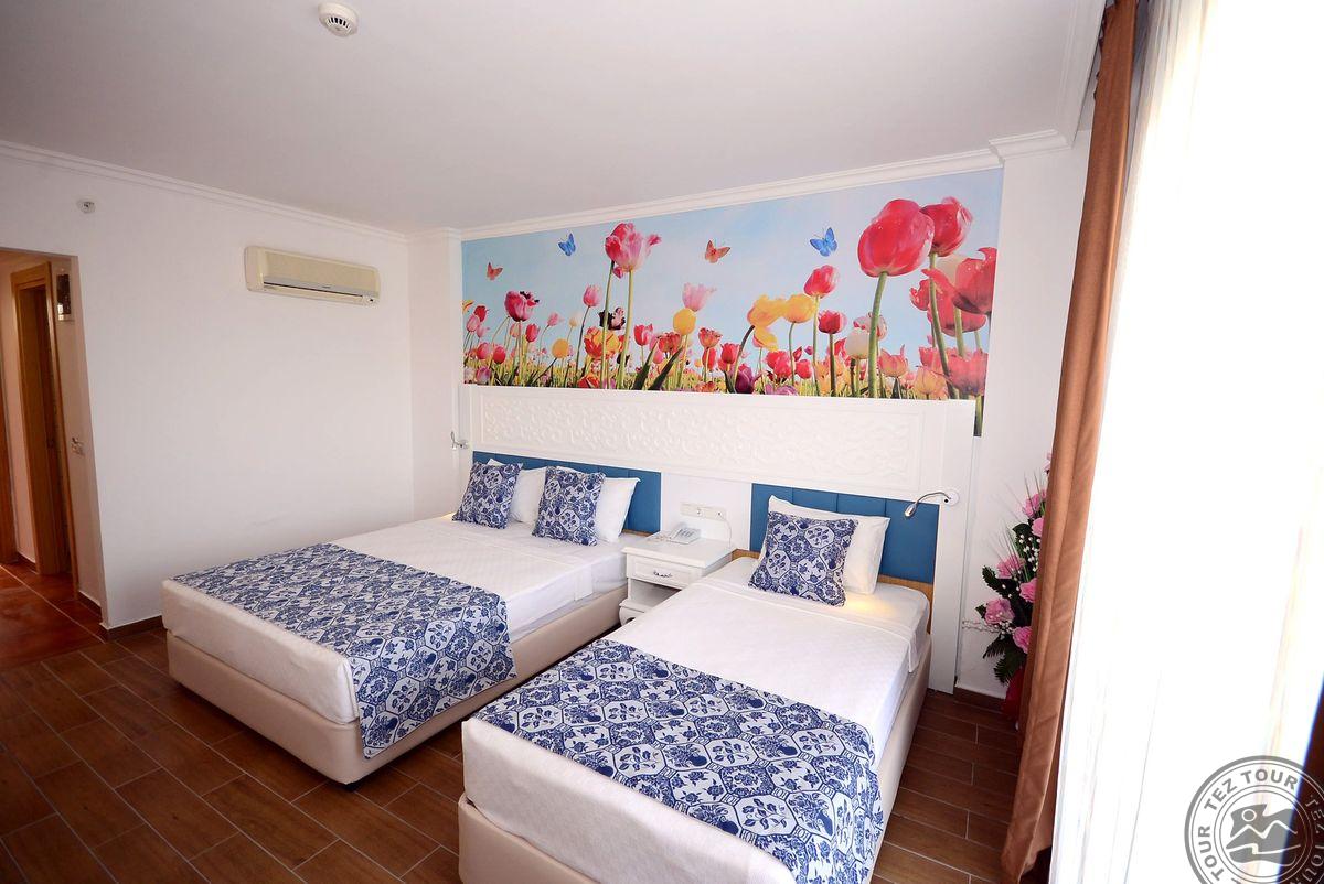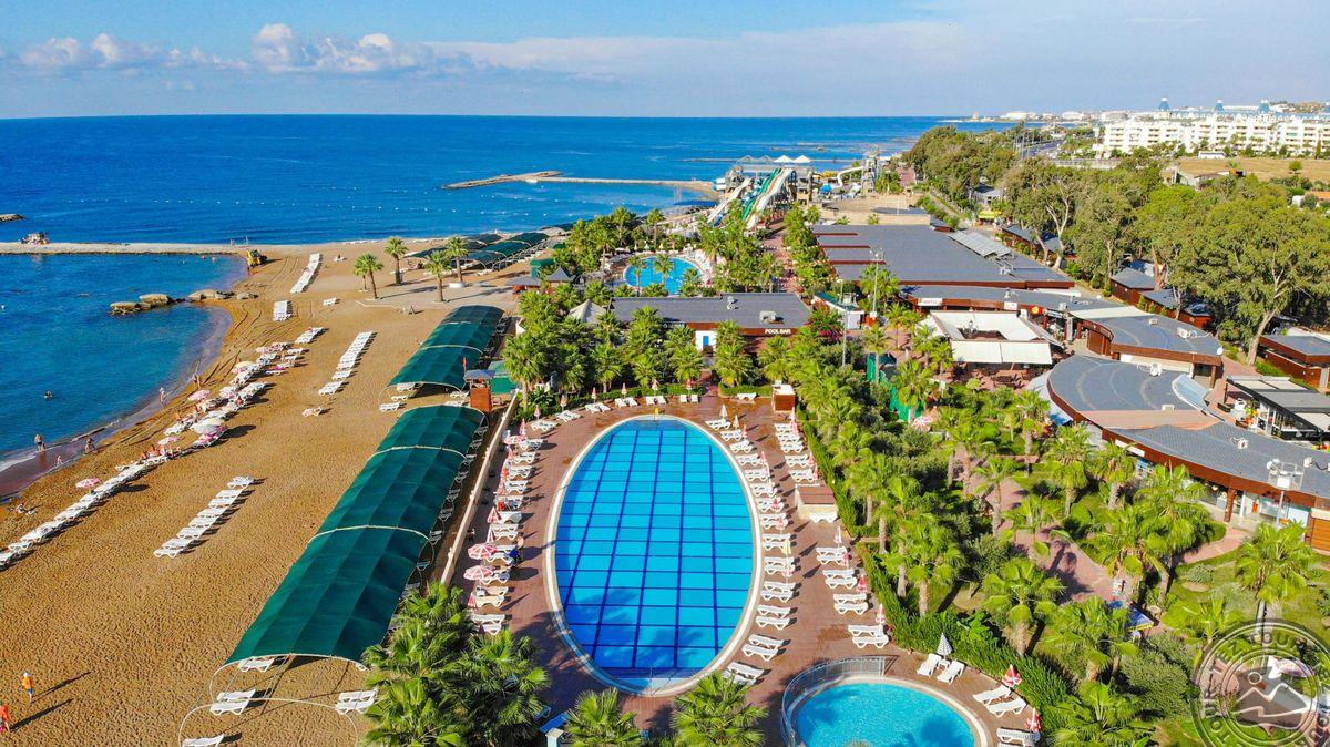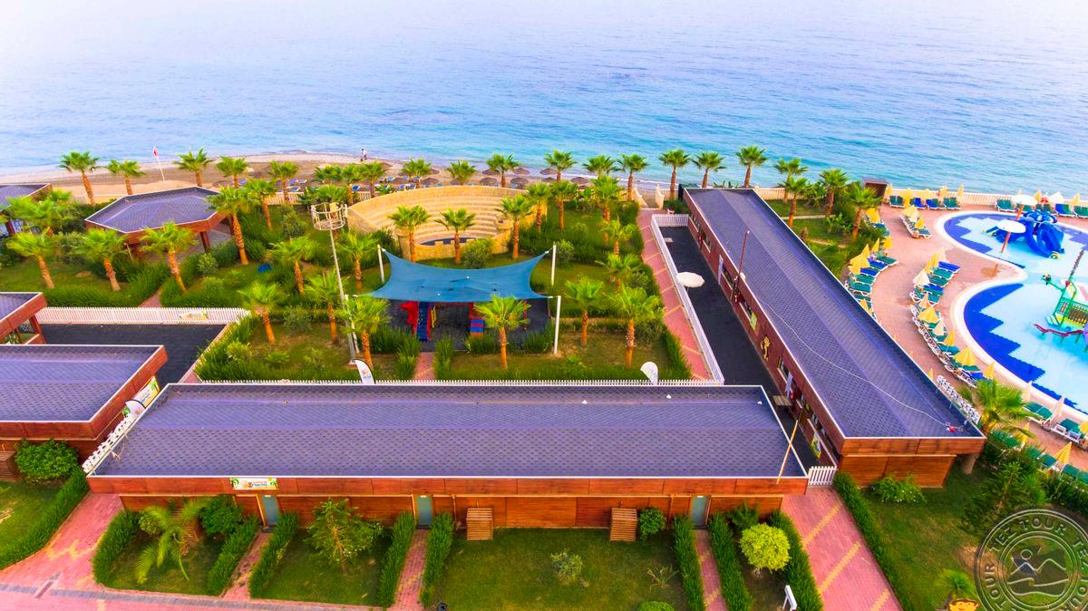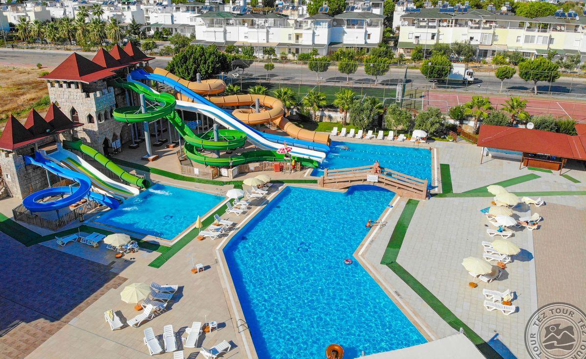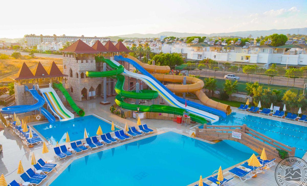 в 100 км от аэропорта г. Анталья, в 18 км от г. Аланья, в 100 м через дорогу от собственного пляжа по подземному переходу.
