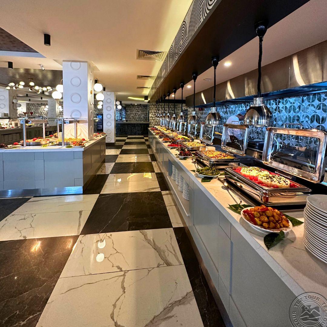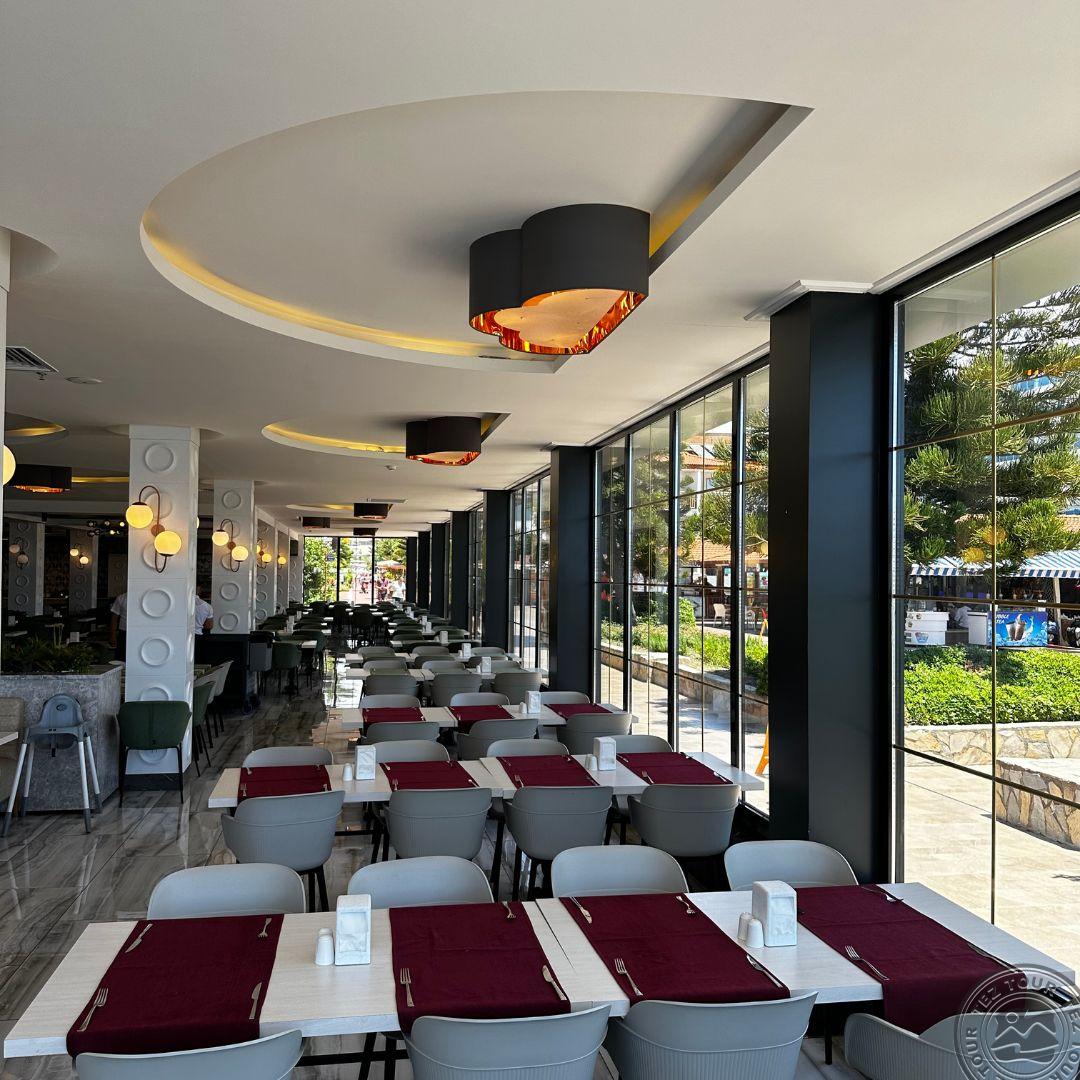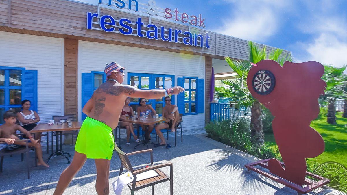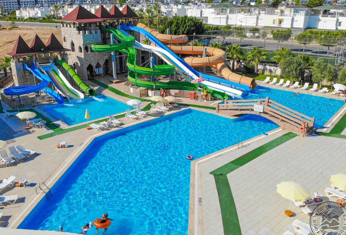 Территория:> рестораны: 1 (основной) бары: 6 бассейны: 3 (открытые) спа-центр конференц-залы: 1 (на 20-60 чел.) у бассейна полотенца: депозит рестораны a la carte: 1 (по предварительной записи, платно ) кабинет врача водные горки: 4 прачечная Wi-Fi бесплатно у бассейна зонтики, шезлонги, матрасы: бесплатно парикмахерская магазины