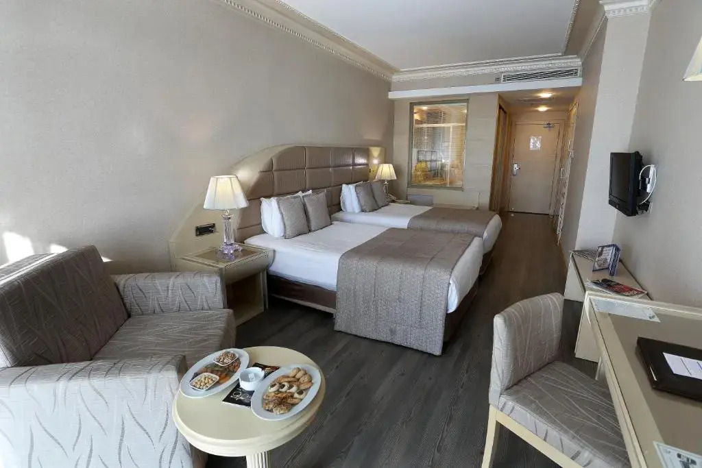 Описание номеров Eser Premium Hotel&spa 5*:Спа-отель располагает 172 элегантными и просторными номерами, в каждом из которых есть кондиционер, сейф, письменный стол, мини-бар и телевизор с возможностью просмотра спутниковых каналов. По запросу предоставляются детские кроватки и дополнительные спальные места.