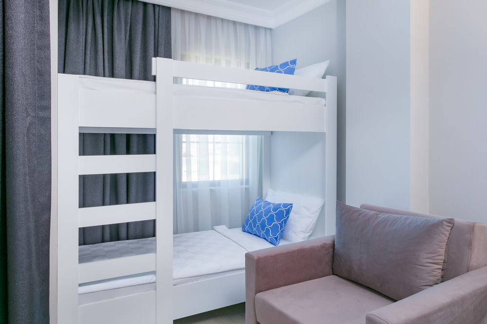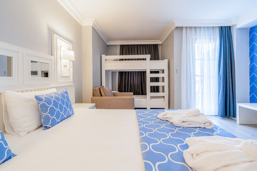 BUNKBED ROOMВид из номера: на окрестности/частично на море/мореПлощадь номера: 23 кв.мКомментарий: кровати Dbl или Twin, двухъярусная
