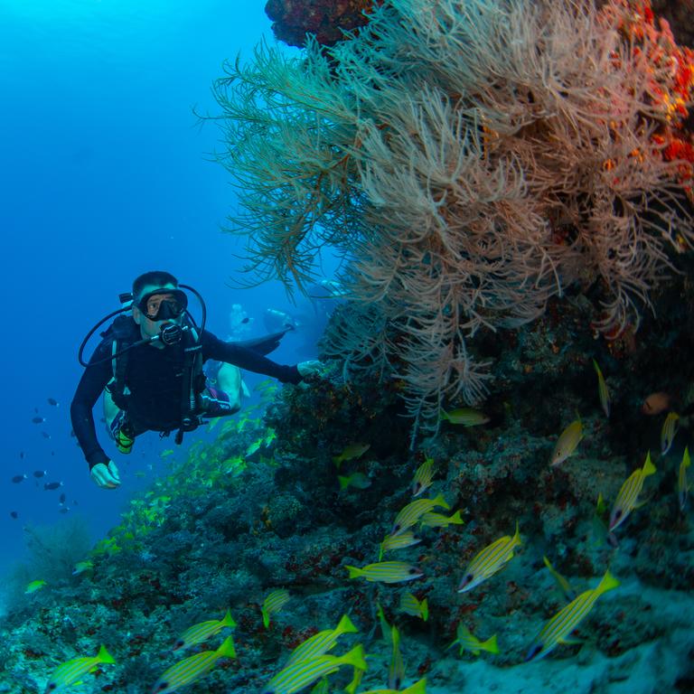 Из отеля Reef можно напрямую выйти к пляжу. Виллы оформлены в элегантном загородном стиле и располагают ванной комнатой с медными элементами и мебелью с резьбой по дереву. Гости могут также отдохнуть в уникальных джунглях палаточных джунглей, а в оформлении других номеров использованы элементы на острове с кемпингом, блок или джунглями.