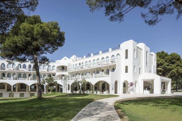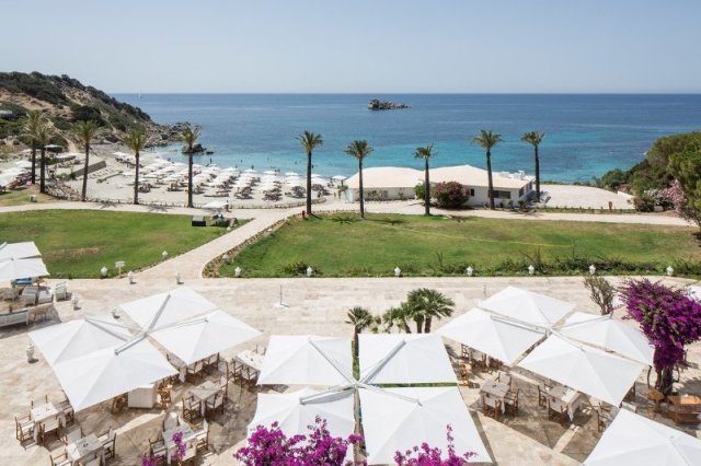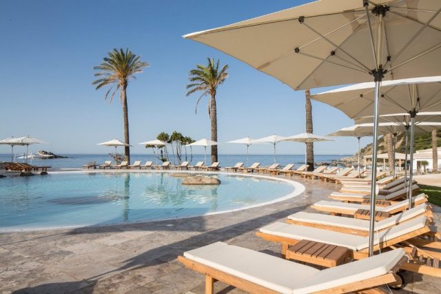 122 номера; 4 разных бассейна (панорамный, бассейн для детей), Spa-центр Acquapura- услуги прачечной (€), аренда автомобилей (€), парковка, частная бухта с живописным песчаным побережьем